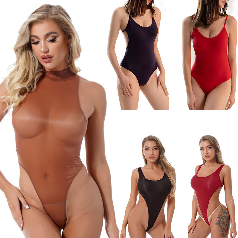 Glossy appearance, solid color, mid waist with elastic waistband for comfy fit.