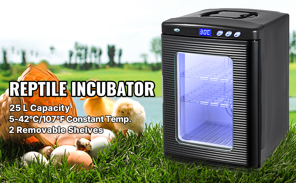 The incubator can be widely used for incubating reptiles and poultry like turtles, lizards, geckos, chickens, ducks, quails, etc. 21 days 35-38 ℃/95-100℉ is suggested for poultry eggs.