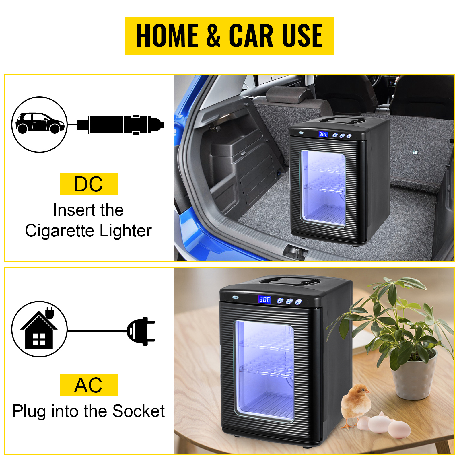 Our egg hatcher incubator includes two AC/DC plugs suitable for standard wall outlets and 12V cigarette lighters in vehicles, so you can use it at home and outdoors.
