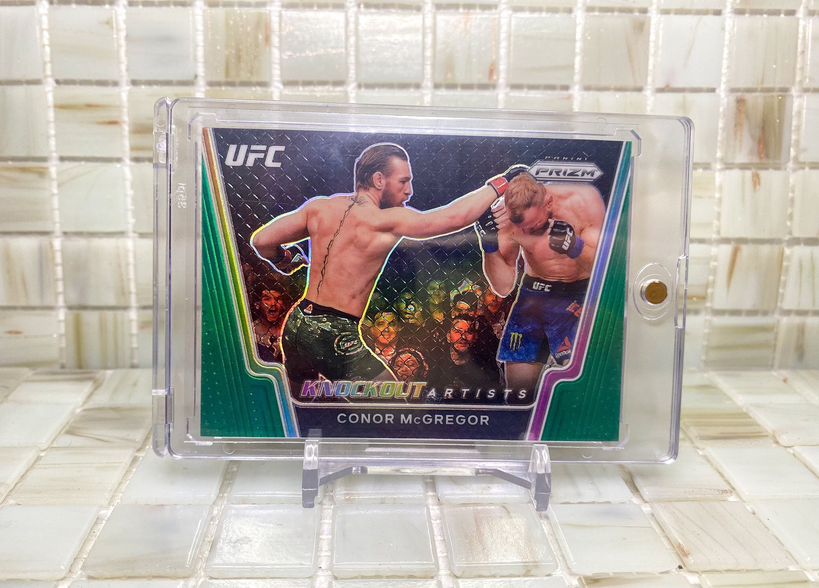 This Is a Genuine Conor McGregor 2021 UFC Knockout Artists Green Prizm Card That Will Enhance Any UFC Card Collection. This Is An Amazing Card For Any Conor McGregor Fans, UFC Fans, MMA Fans, The Ultimate Fighter Fans, and Any Fans of The Notorious Conor Mcgregor.