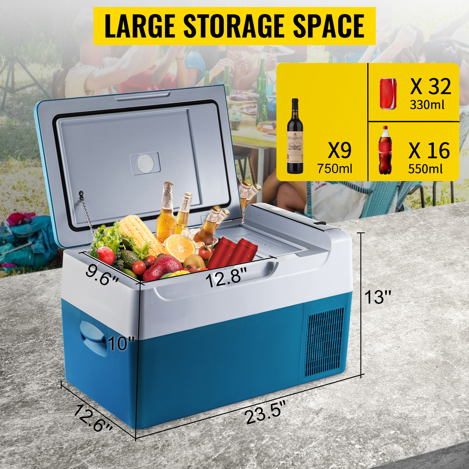 Der großzügige Platz von 12,8 x 9,6 Zoll / 326 x 244 mm bietet Ihnen genügend Raum für die Aufbewahrung von Lebensmitteln, der mehrere Dosen und Flaschen gleichzeitig aufnehmen kann, um den Appetit verschiedener Personen zu befriedigen. Machen Sie sich also keine Sorgen über Lebensmittel- oder Getränkeknappheit bei Veranstaltungen oder unterwegs.