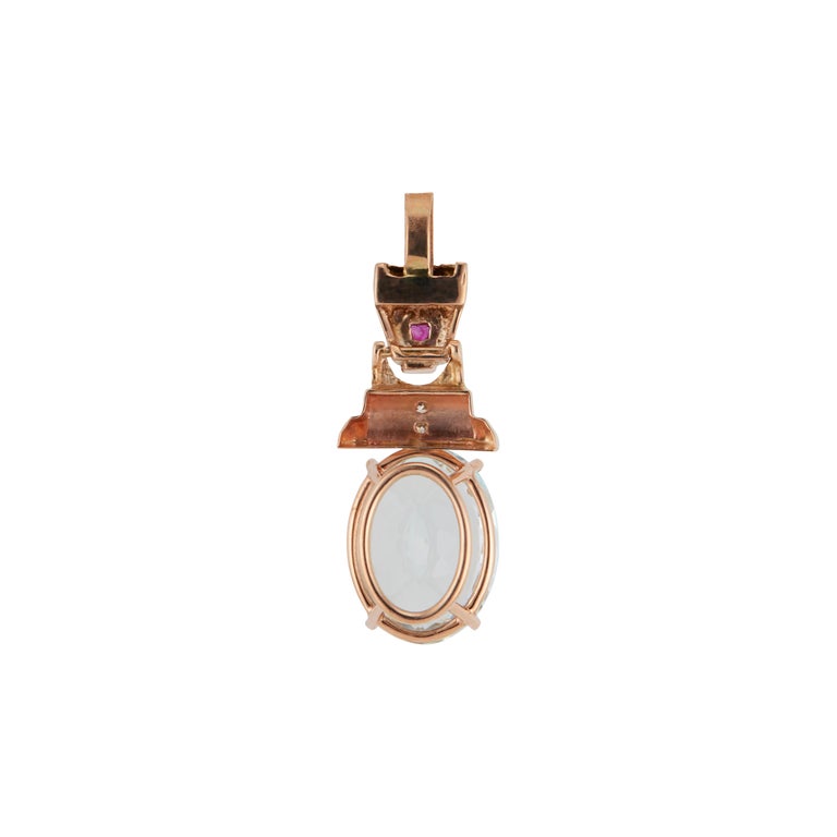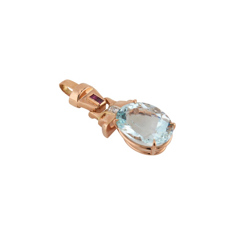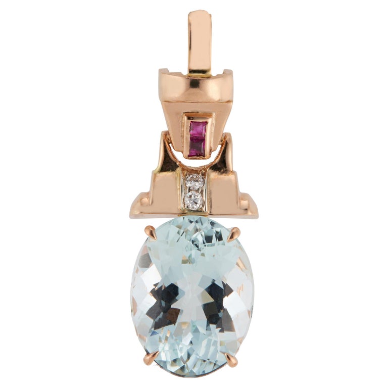 Antique Retro Art Deco 14k Pink Gold 9.00ct Aqua Ruby Diamond Pendant