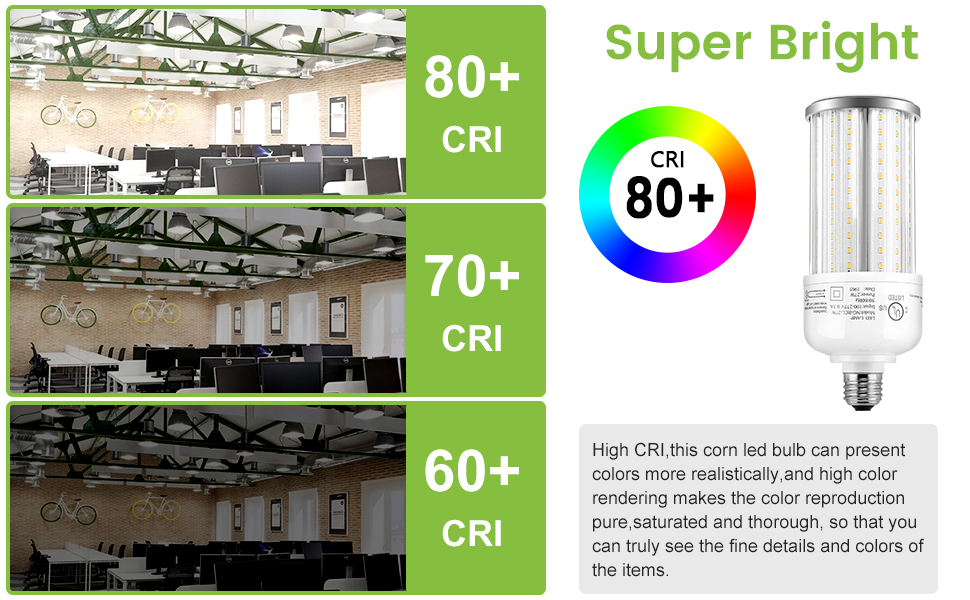 Energetic LED bulbs,light is more than 80 CRI for better color rendition,making greens,reds,and blue in your home appear more accurately.