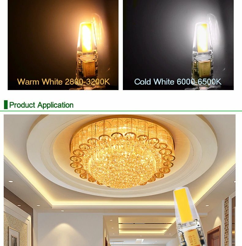 Spezifikation: ~Dimmbar: Nicht ~Sockel: G4 ~Lichtstrom: 300LM ~Farbtemperatur: Warmweiß 2900K / Kaltweiß 5500K ~Leistung: 3W ~Spannung: AC / DC 12V ~bstrahlwinkel: 360 Grad ~CRI: ≥80 ~Größe: 3,8cm x 1cm Lifespan:20000 Hours
