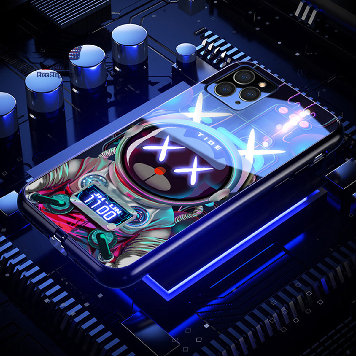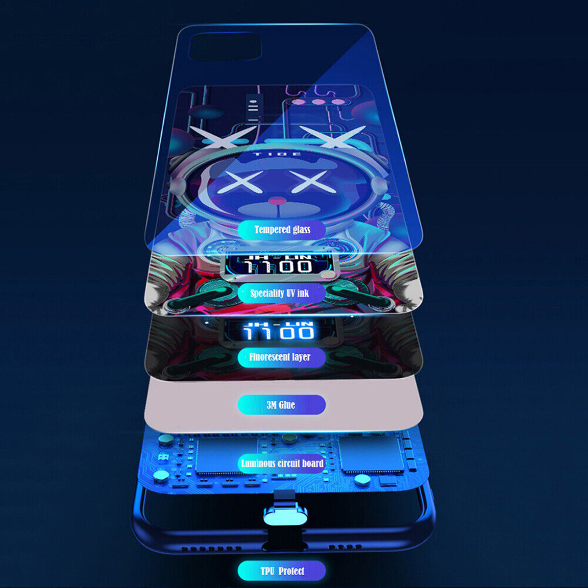 The mobile phone case can realize intelligent luminescence through the built-in chip induction. The intelligent sensor control chip used has low electrode consumption and no endurance.