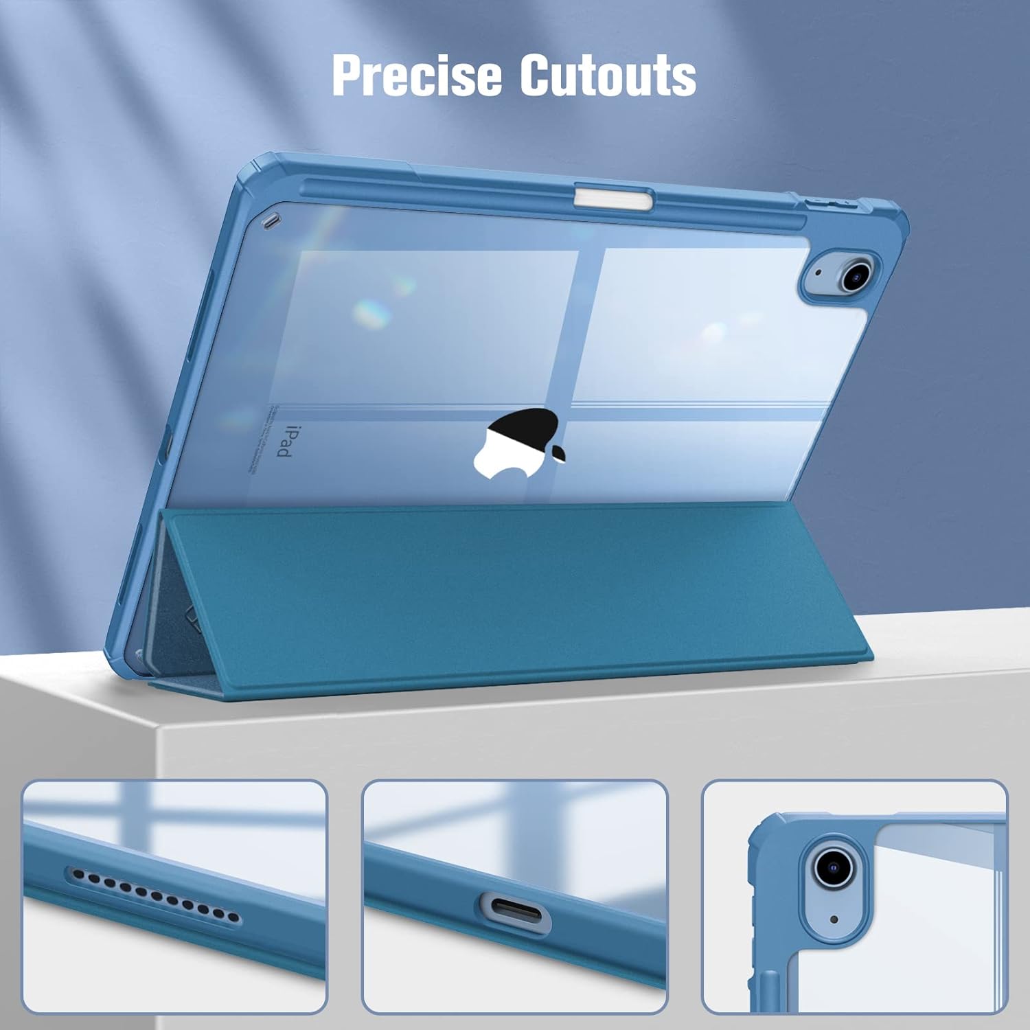 - Hardshell back cover with flexible TPU bumper protects your iPad from shocks, drops and impacts. Soft microfiber interior front prevents your tablet from scratched. And the crystal clear back cover will proudly show off the Apple icon.