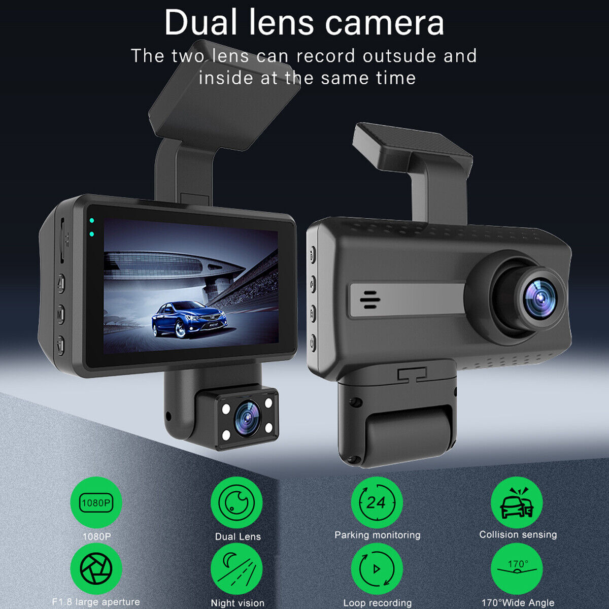 1 The driving recorder adopts a full HD front and inside dual-lens design, and simultaneously records the front and inside of the car in real time. It is very suitable for families with infants and young children in the back row, as well as for taxi and online car-hailing drivers.