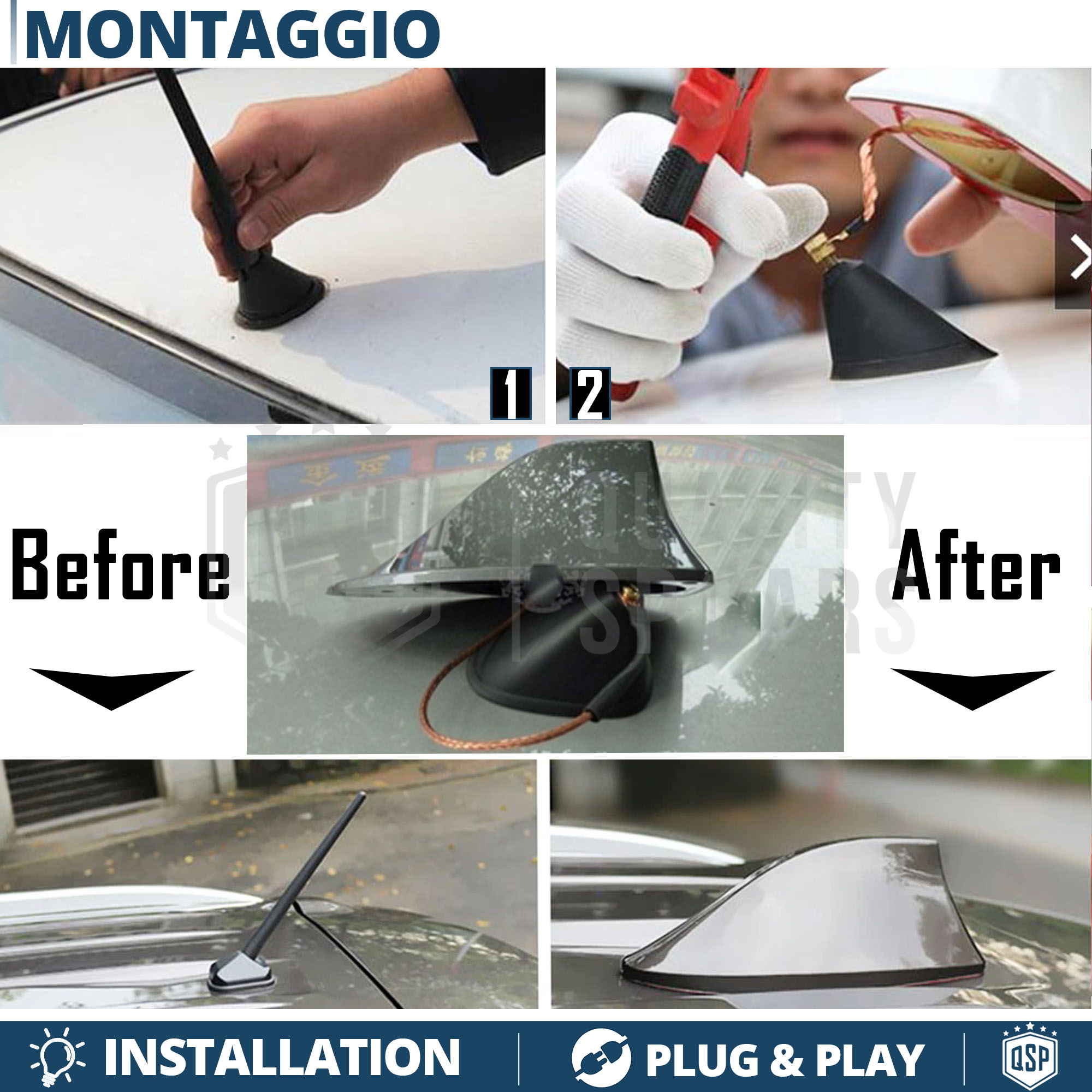 Facile installazione, VERA ricezione Segnale radio AM/FM/DAB. Conferisce alla vettura un look sportivo, senza rinunciare alla qualità dei materiali e all' efficenza della ricezione.
