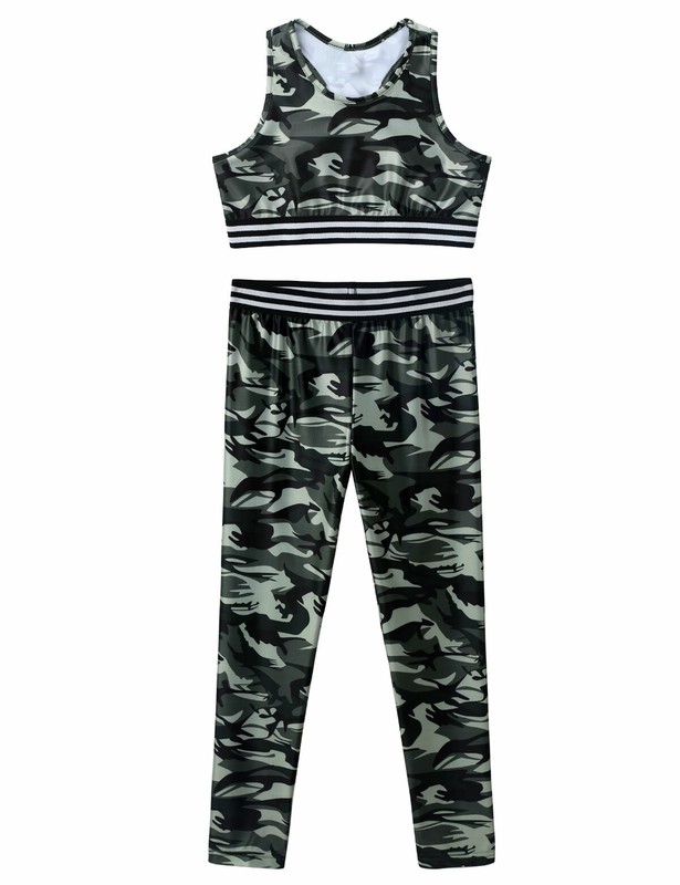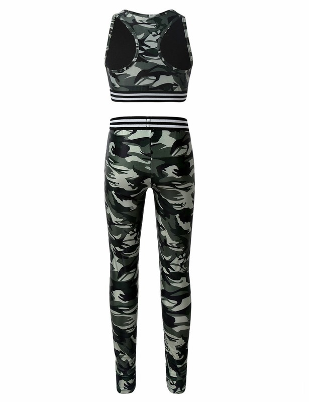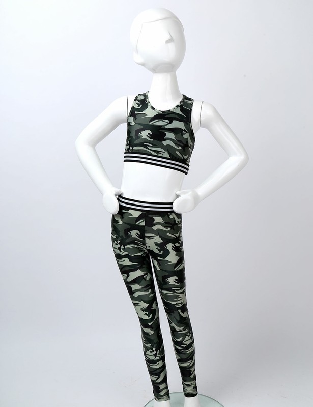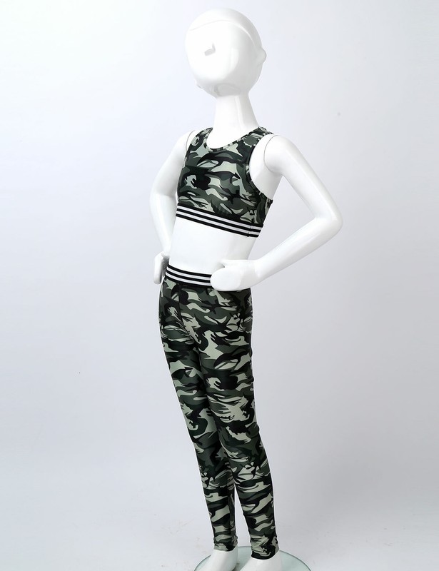 Matching full length leggings with elastic waistband. Allover printed with camouflage pattern. Fashionable and stylish activewear set for your girl.