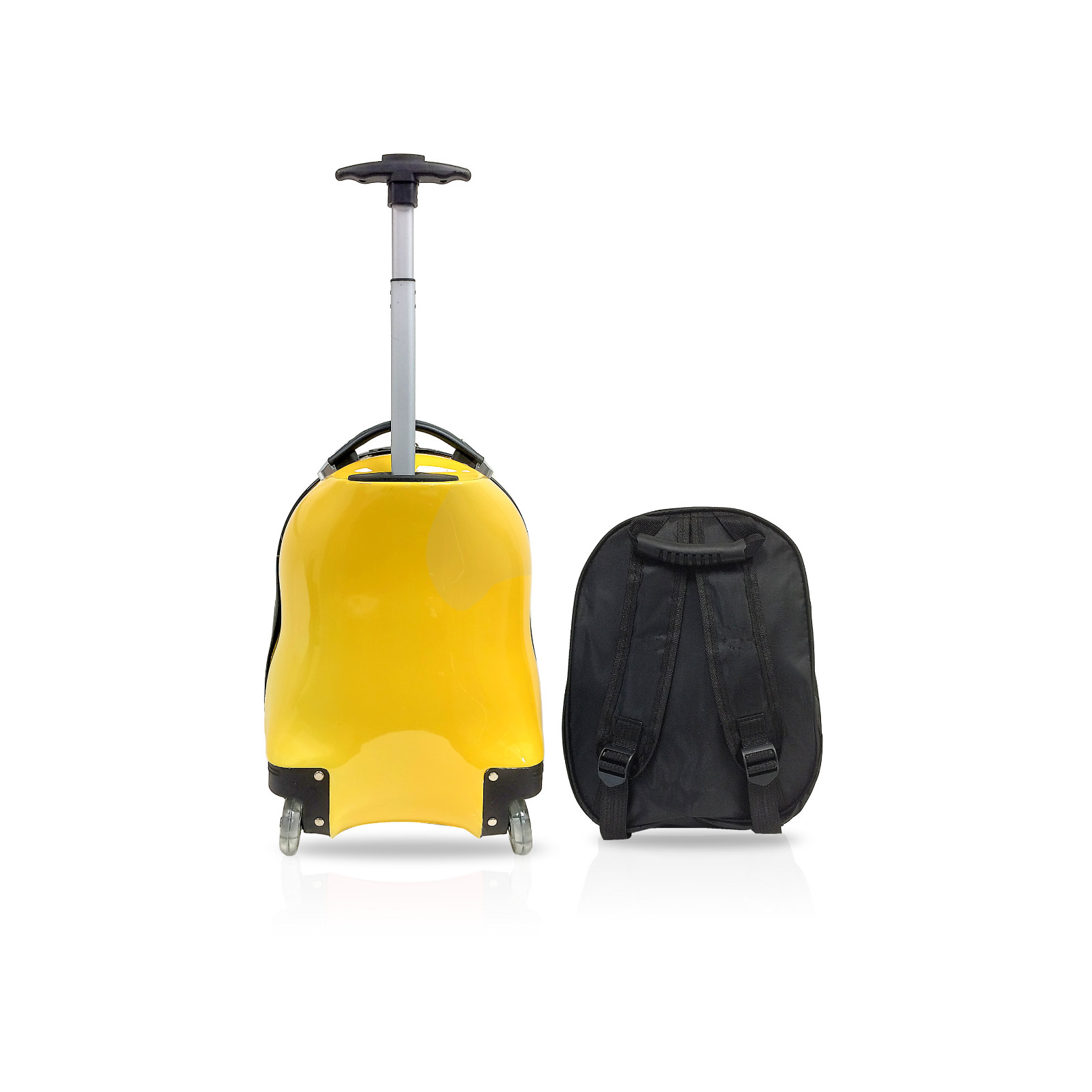 This Kids Backpack Set is the perfect travel companion for your little ones. The collection was created with the unique characteristics of children in mind, incorporating several design features that benefit children. the piece has been printed with colorful and vibrant artwork adding loads of fun to traveling for the kids and the entire family. The luggage print is protected by a layer of clear coat which also gives it a beautiful glossy shine. The patent-pending design of this case also allows the wheels to protrude out keeping the case elevated and preventing the bottom of the luggage from touching the ground. children can wheel these fun cases around, as they also feature our inline skate wheels that make rolling even smoother. Both the luggage and backpack piece have a zipper closure system when opened revealing a beautifully lined interior.