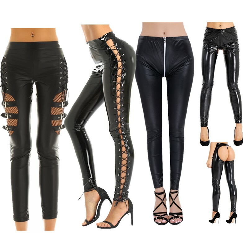 Design with crotchless, glossy surface and slim fit, high waist with elastic waistband.