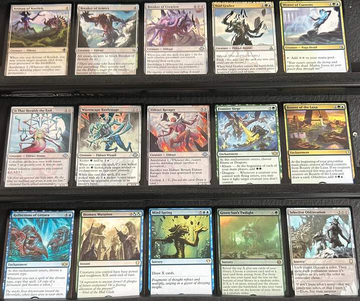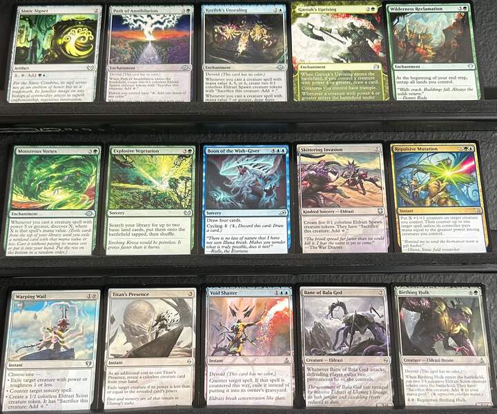 The synergy between Kruphix’s mana storage and your draw spells means you’ll always have a full hand. Save your mana with Kruphix for a massive Gelatinous Genesis or Mind Spring turn to refill your hand and refuel Psychosis Crawler to end the game. Keep opponents off balance with fog effects like Haze of Pollen and Lull, while Aetherspouts punishes attackers and leaves your board untouched. Victory Chimes and Wilderness Reclamation work together to make sure you’re never short on mana at the right time!