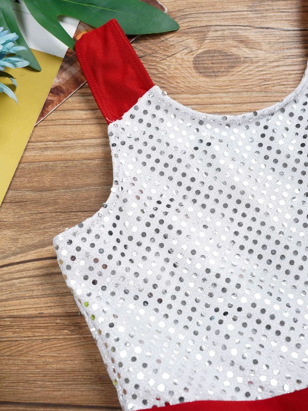 Ballet leotard dress is made of polyester, spandex and sequins material, hand wash.