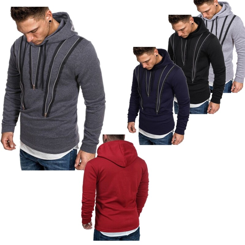 Mens fashion color block hooded sweatshirt with long sleeve for daily wearing or office work.
