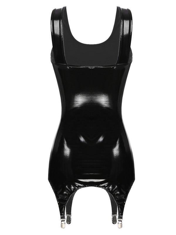 Glossy patent leather tank dress for women, sleeveless, u neck, slim fit highlights your body curve.