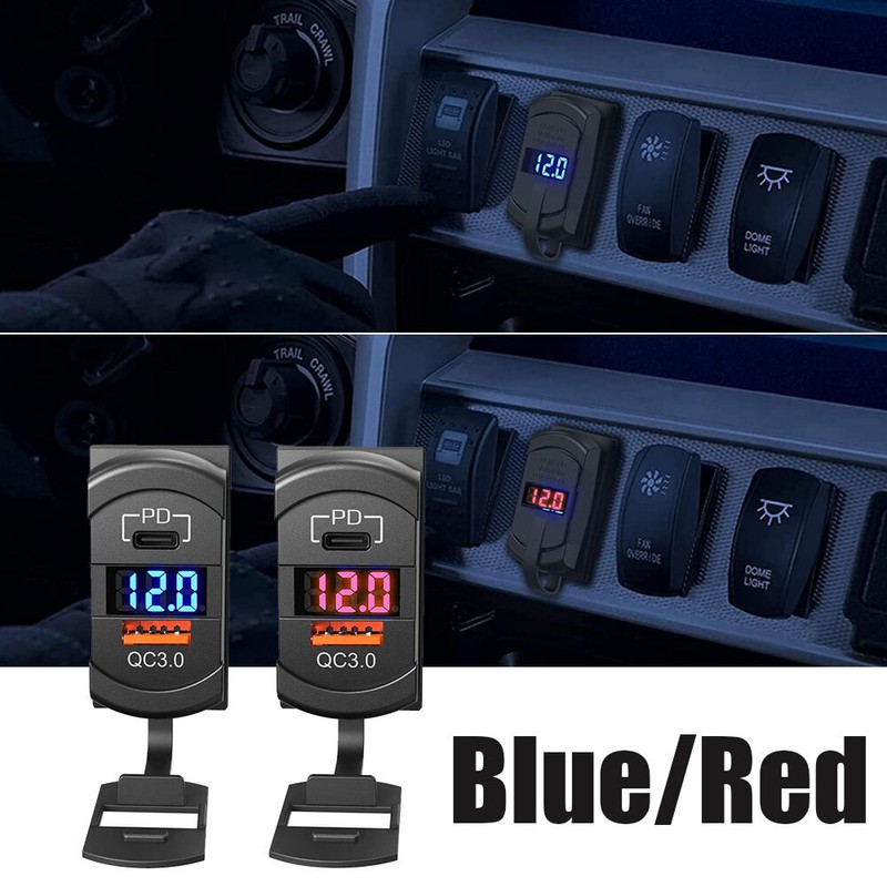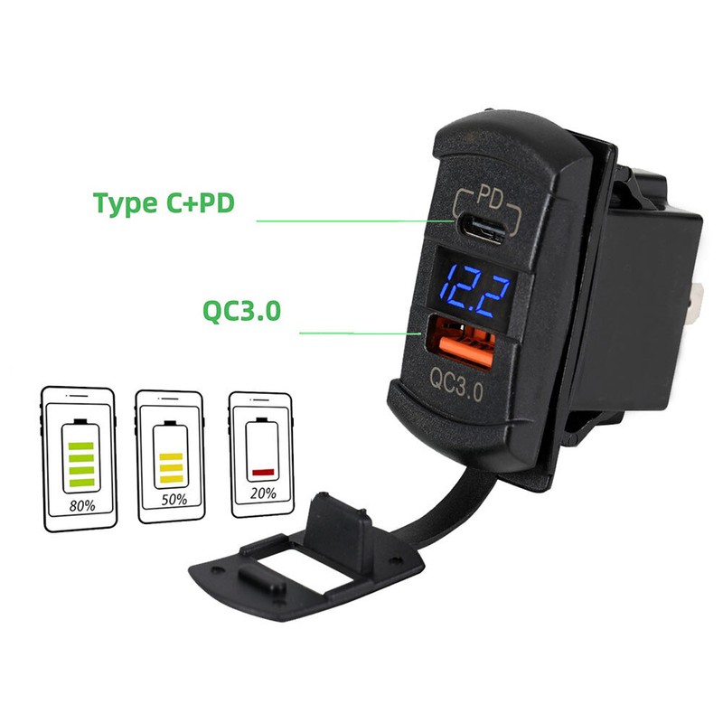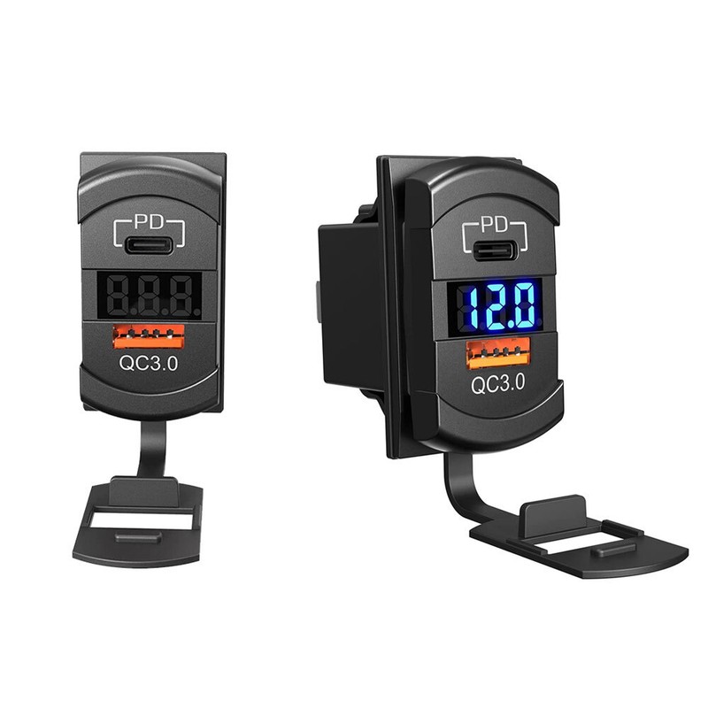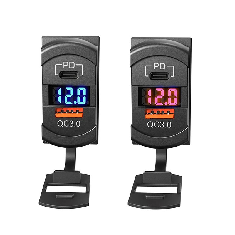 USB-C Car PD QC3.0 Dual USB Charger Socket 12V 24V Phone Charge Power Adapter