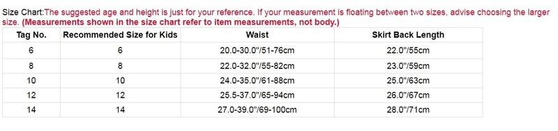 | Tag No. | Recommended Size | Waist | Skirt Back Length |