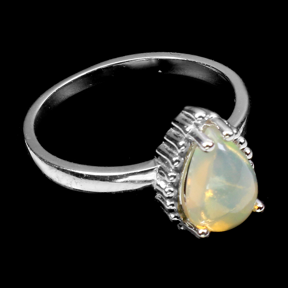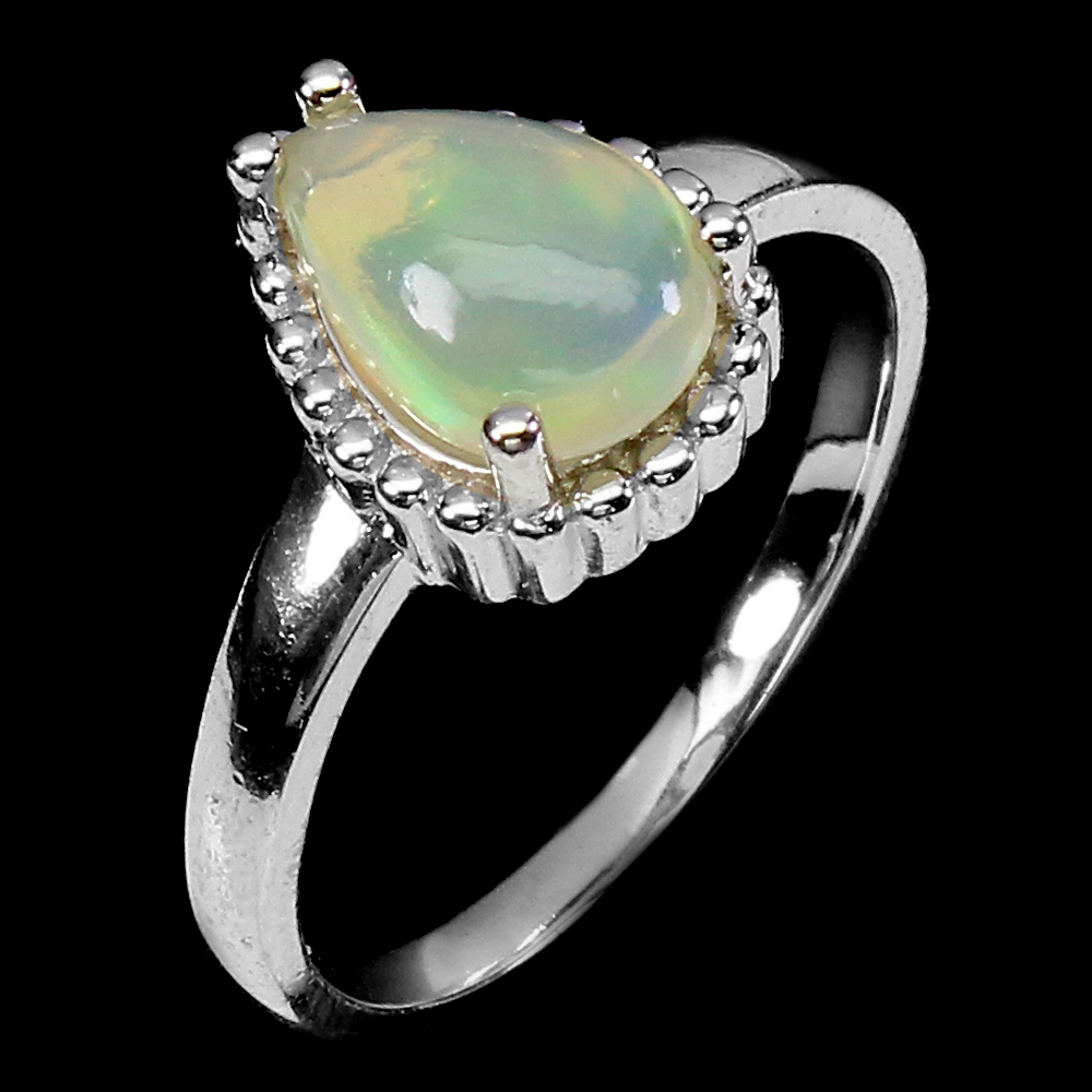 Unheated Pear Fire Opal Rainbow Full Flash 10x7mm 925 Sterling Silver Ring 8