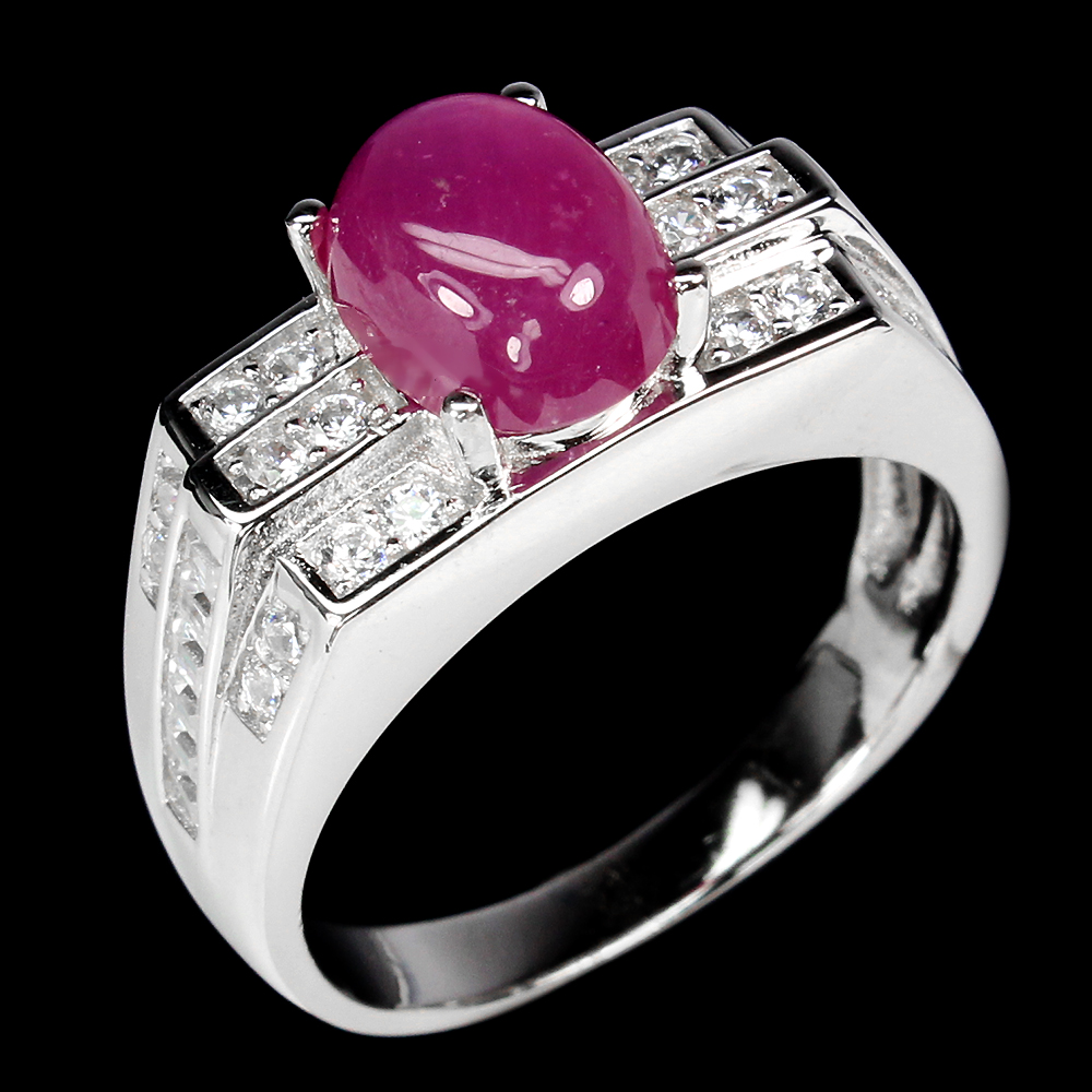 Heated Oval Ruby 9x7mm Simulated Cz White Gold Plate 925 Sterling Silver Ring