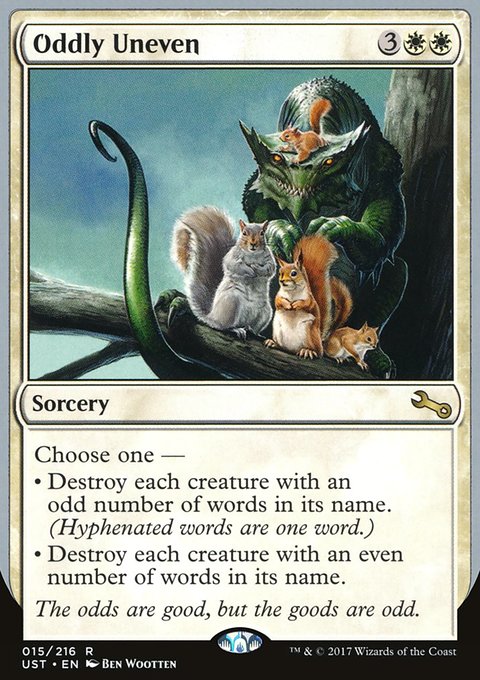 | | Name: | Oddly Uneven | | Set: | Unstable | | Number: | 15 | | Condition: | Near Mint or better | | Language: | English | | Variation: | Non-Foil | |