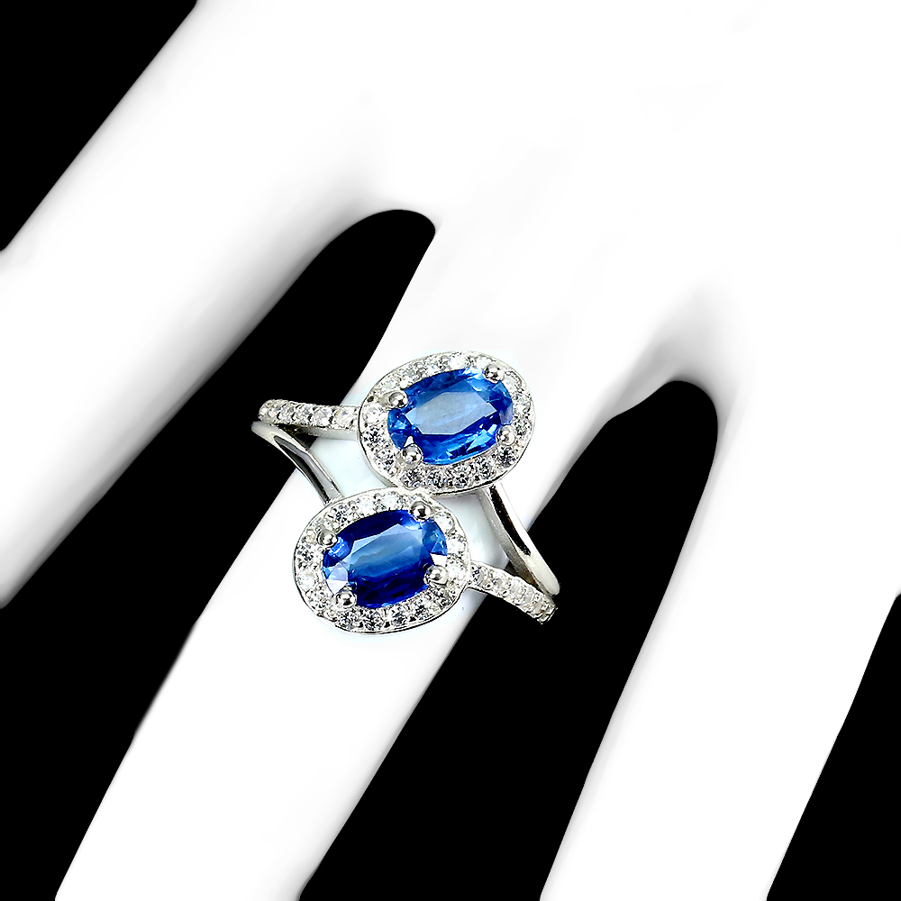Unheated Oval Kyanite 7x5nn Cz 14K White Gold Plate 925 Sterling Silver Ring