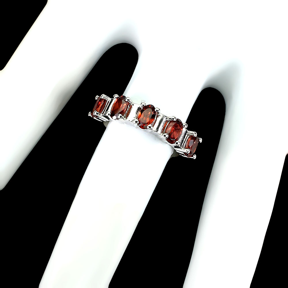 Unheated Oval Mozambique Garnet 14K White Gold Plate 925 Sterling Silver Ring 8