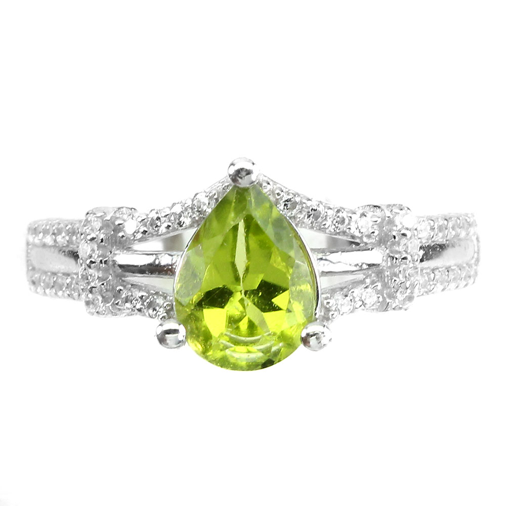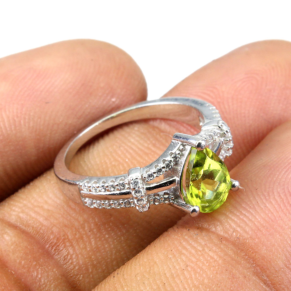 Unheated Pear Green Peridot 8x6mm Simulated Cz 925 Sterling Silver Ring Size 8