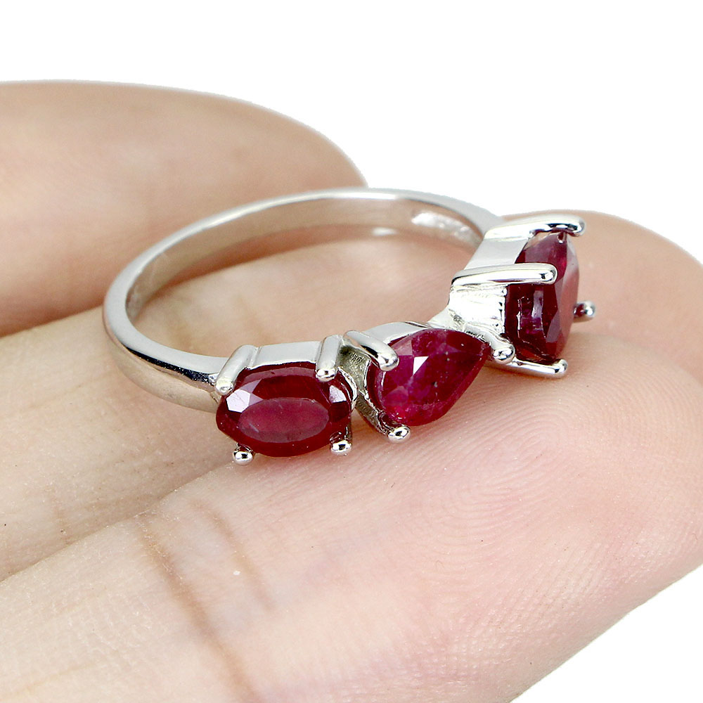 Heated Oval Red Ruby 7x5mm 14K White Gold Plate 925 Sterling Silver Ring Size 6