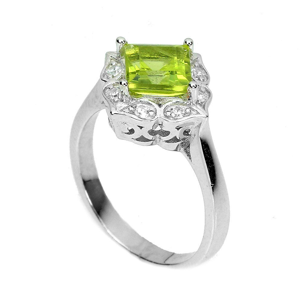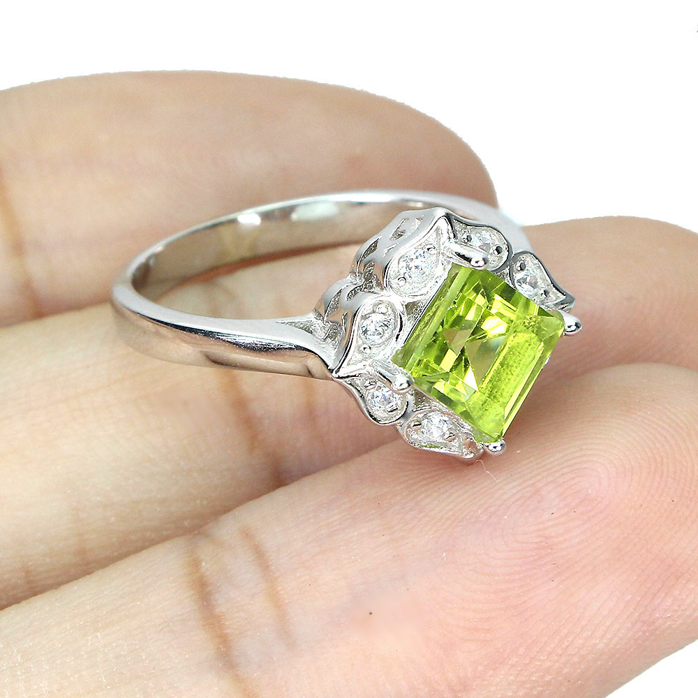 Unheated Square Green Peridot 6mm Simulated Cz 925 Sterling Silver Ring Size 6