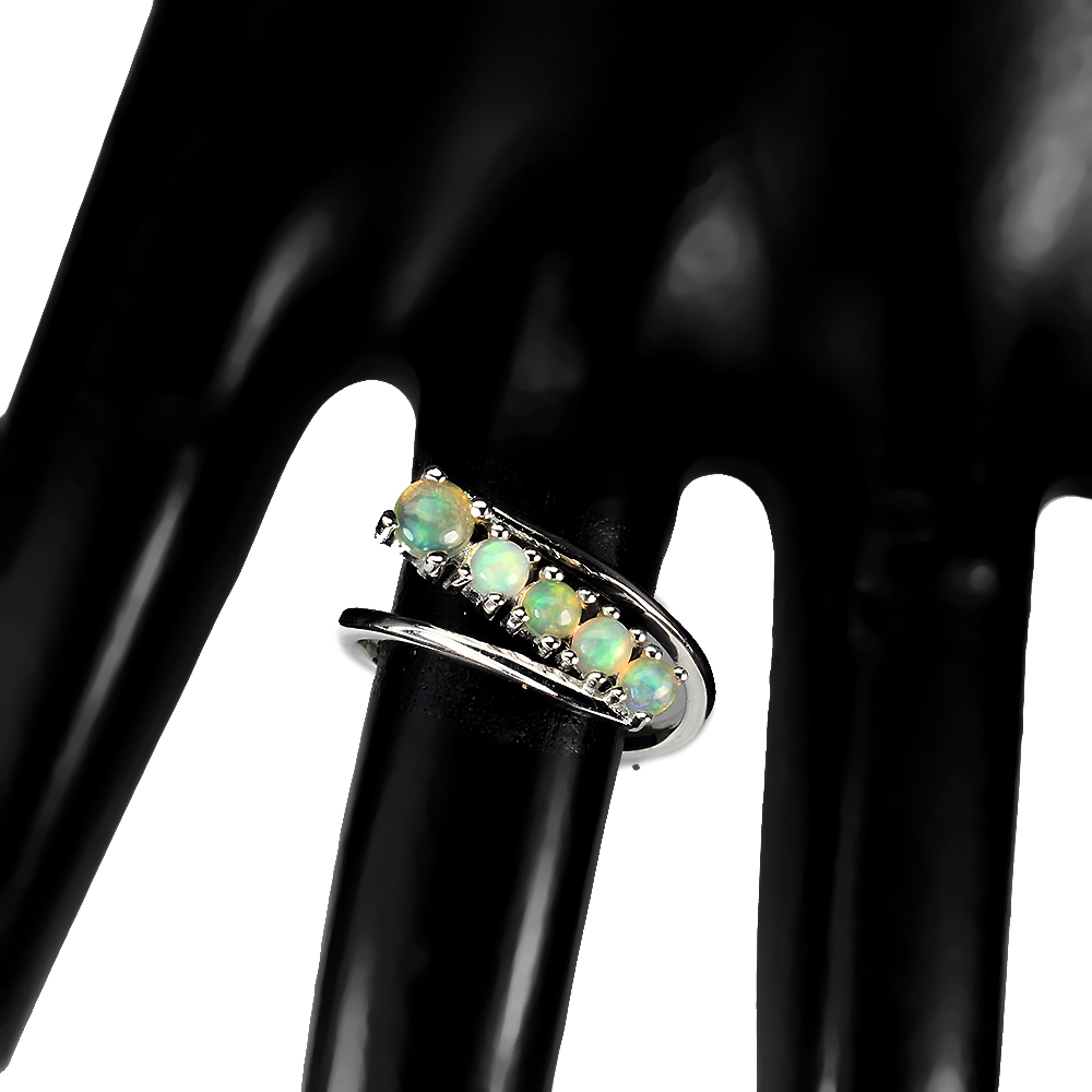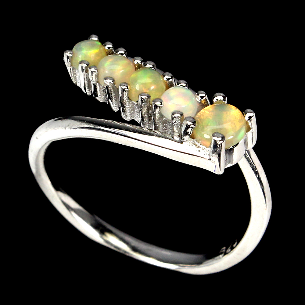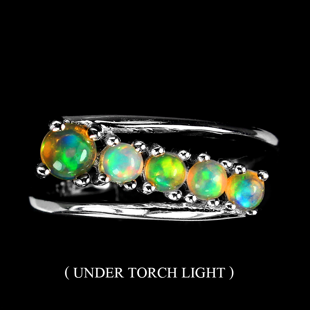 Unheated Round Fire Opal 5mm 14K White Gold Plate 925 Sterling Silver Ring 7.5