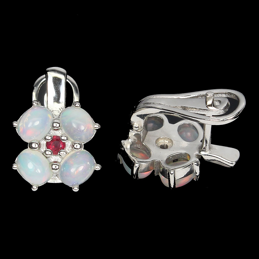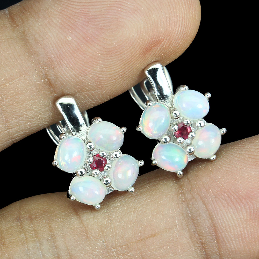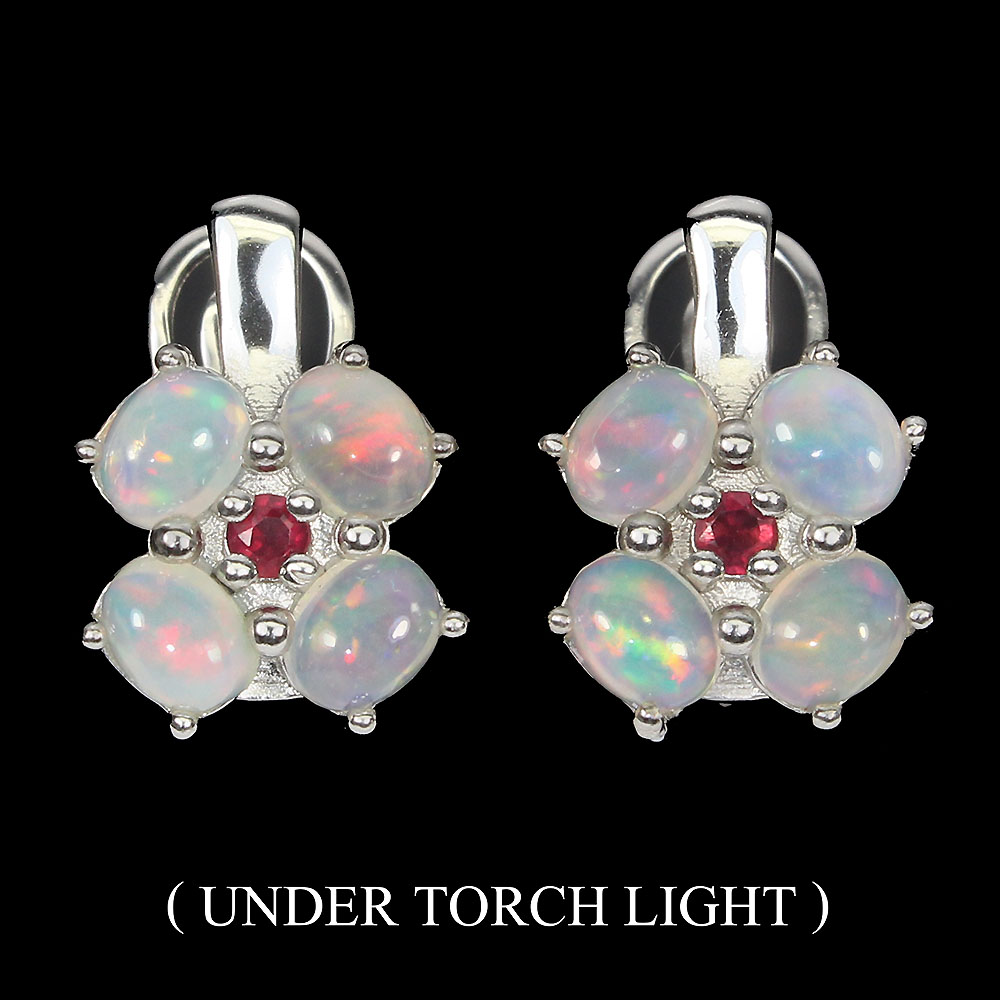 Unheated Oval Fire Opal Rainbow 5x4mm Red Ruby 925 Sterling Silver Earrings