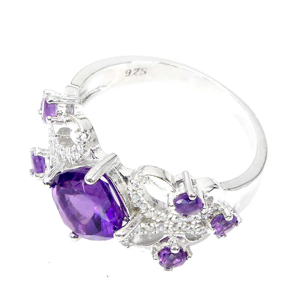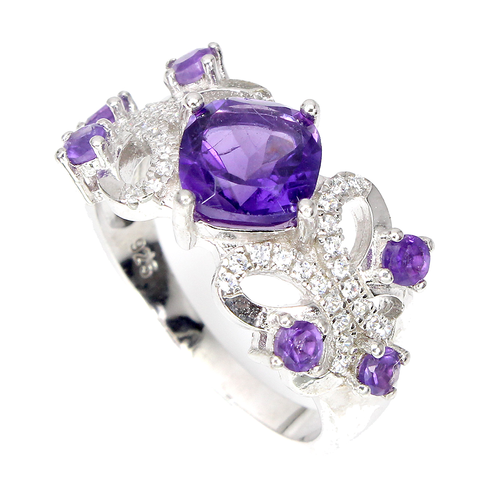 Unheated Cushion Amethyst 7mm Simulated Cz White Gold Plate 925 Silver Ring 7