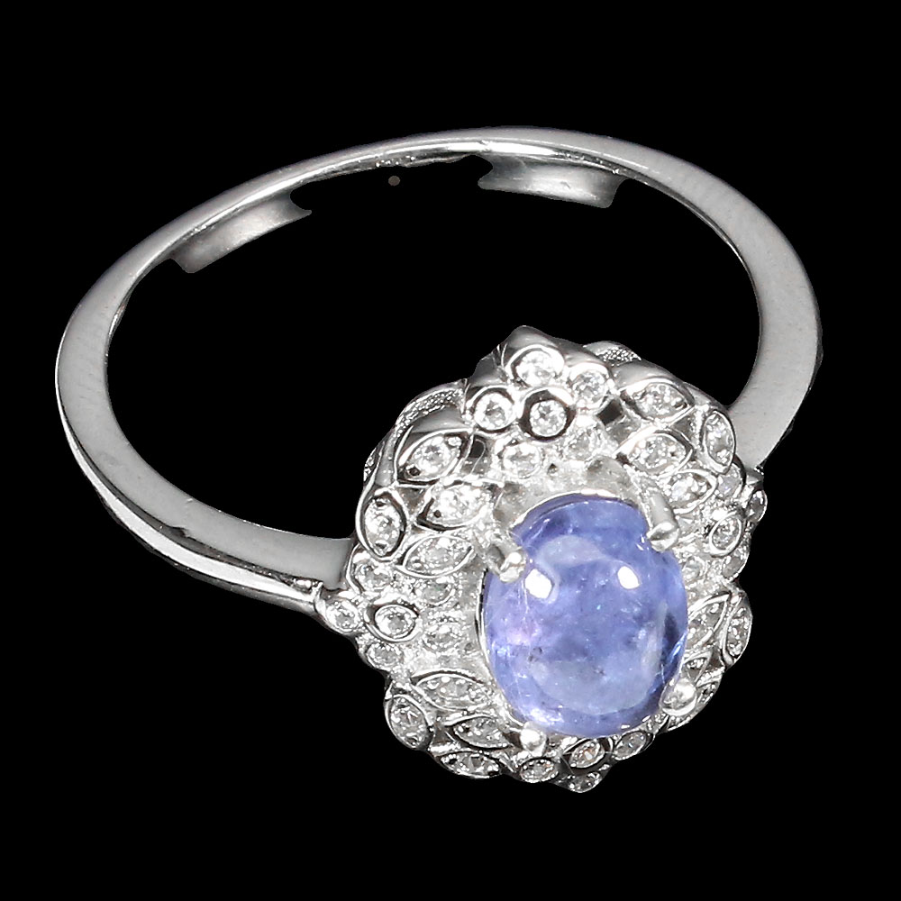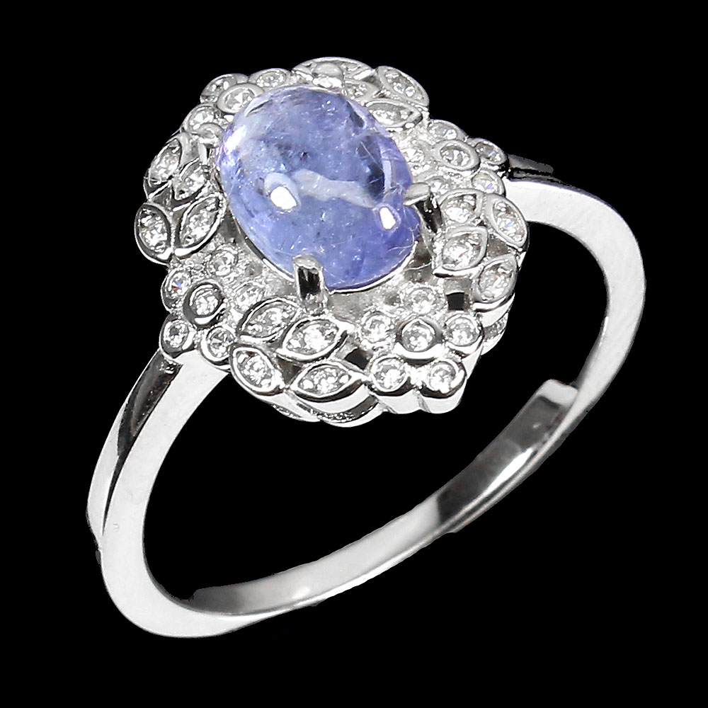 Unheated Oval Blue Tanzanite 8x6mm Simulated Cz 925 Sterling Silver Ring Size 9