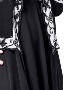 A glamorous addition to your closet with this stunning Black & White Beaded georgette jacket dress evening look. We love the scalloped bands of beadwork edging the sheer open-front jacket. The jacket is sheer with ¾-length sleeves so you can see a hint of the white bodice beneath from front onlyand completely outlined in a contrasting white border with black beading. The sleeveless dress has a V-neck and more beading at the contrast white empire waist bodice. The skirt is full and flowing thanks to full lining (the lining also helps to keep things smooth and shapely!). This design will always be in style! Polyester georgette . Imported.