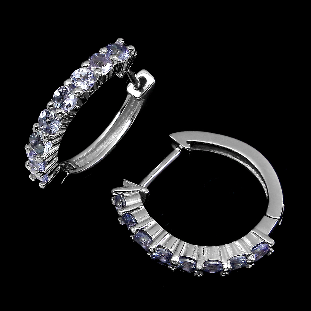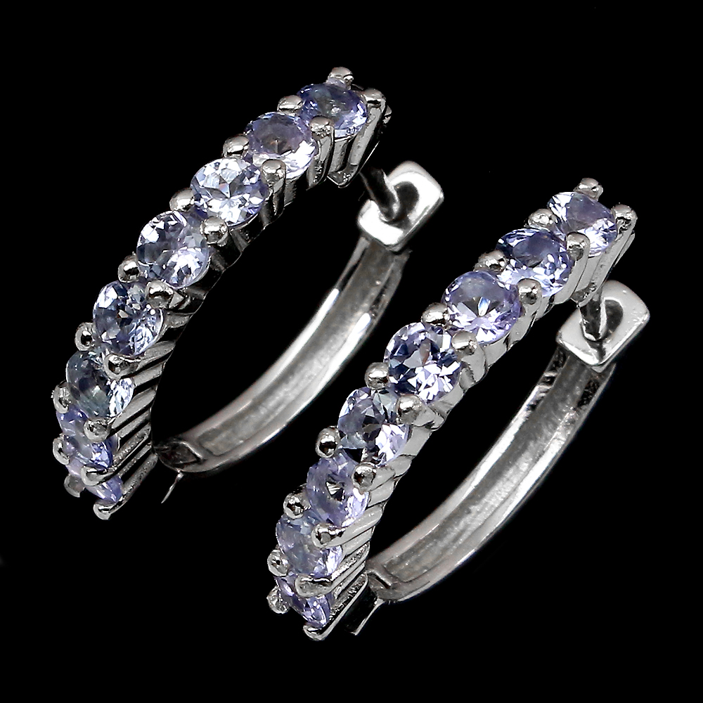 Unheated Round Blue Tanzanite 14K White Gold Plate 925 Sterling Silver Earrings