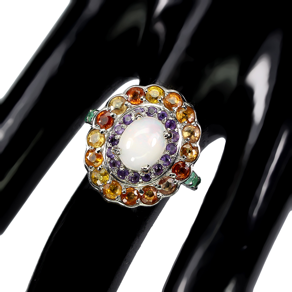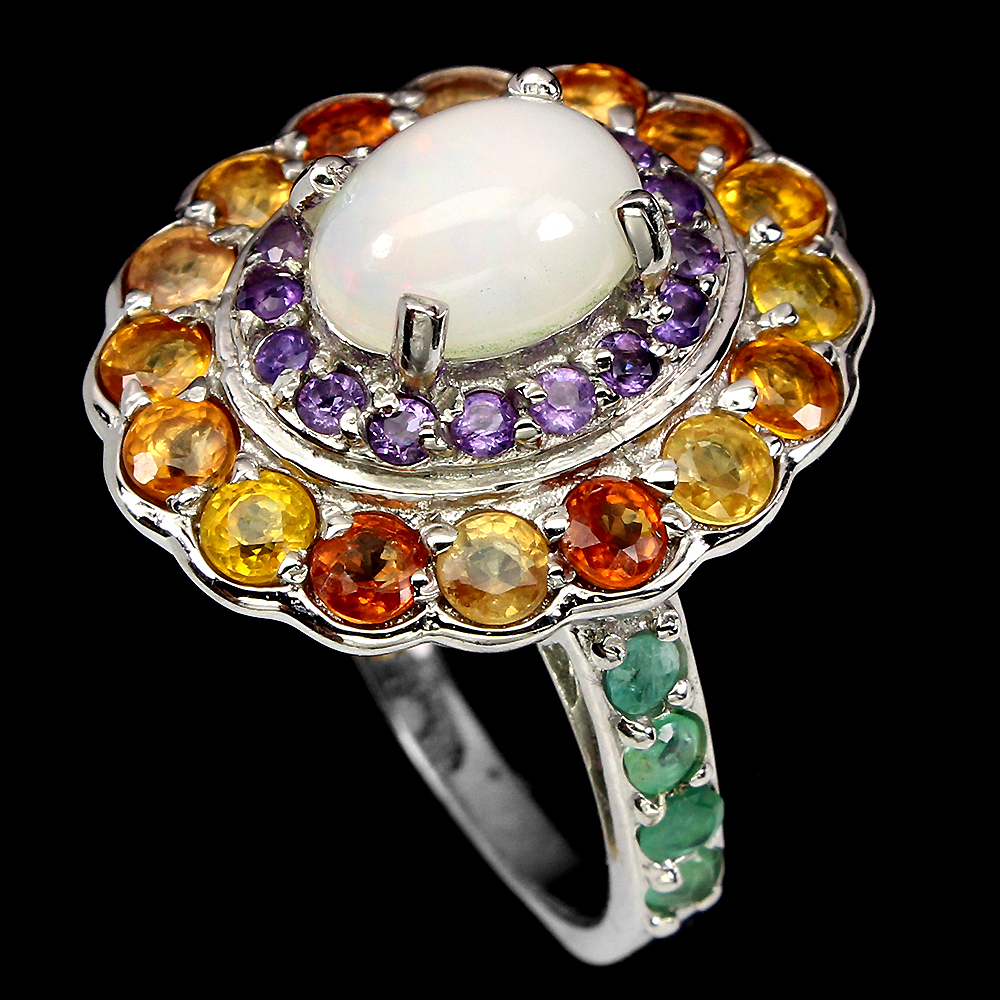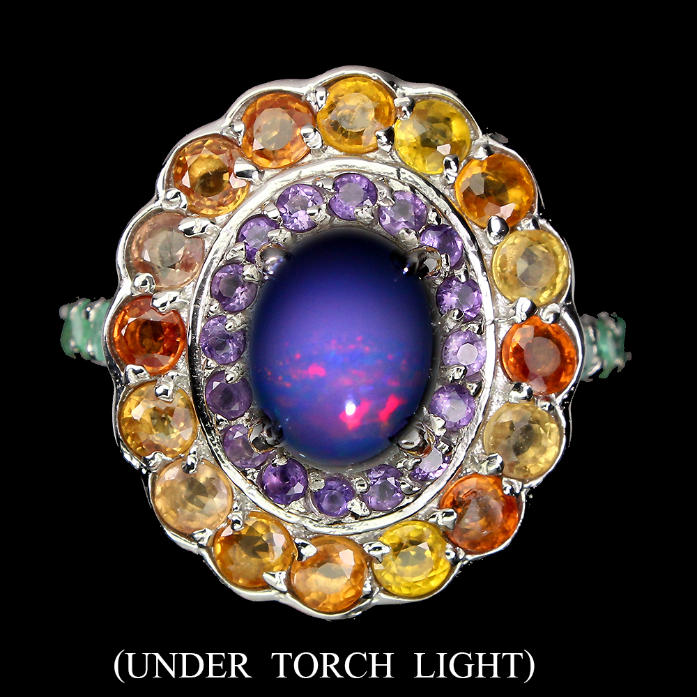 Unheated Oval Fire Opal Amethyst Emerald Gems 925 Sterling Silver Ring Size 8