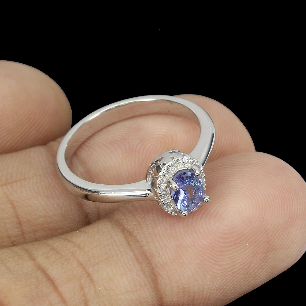 Unheated Oval Blue Tanzanite 6x4mm Simulated Cz 925 Sterling Silver Ring Size 7