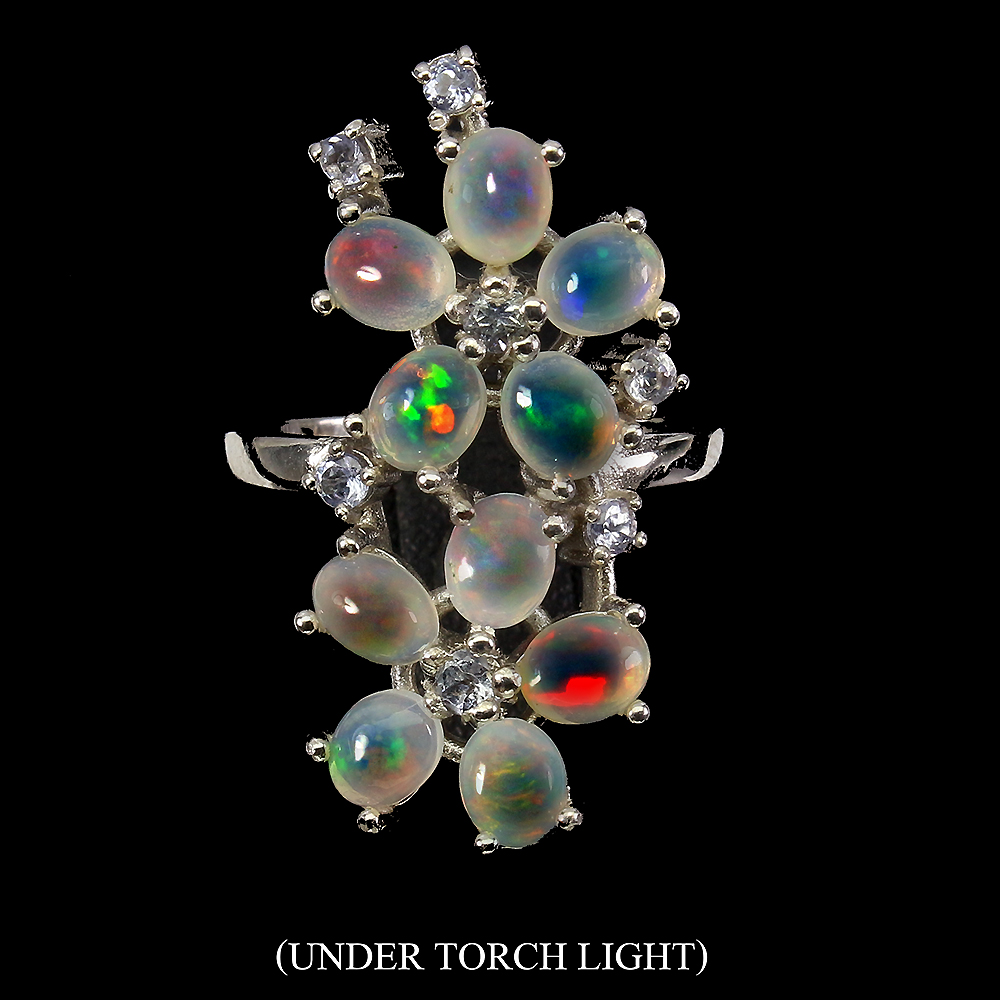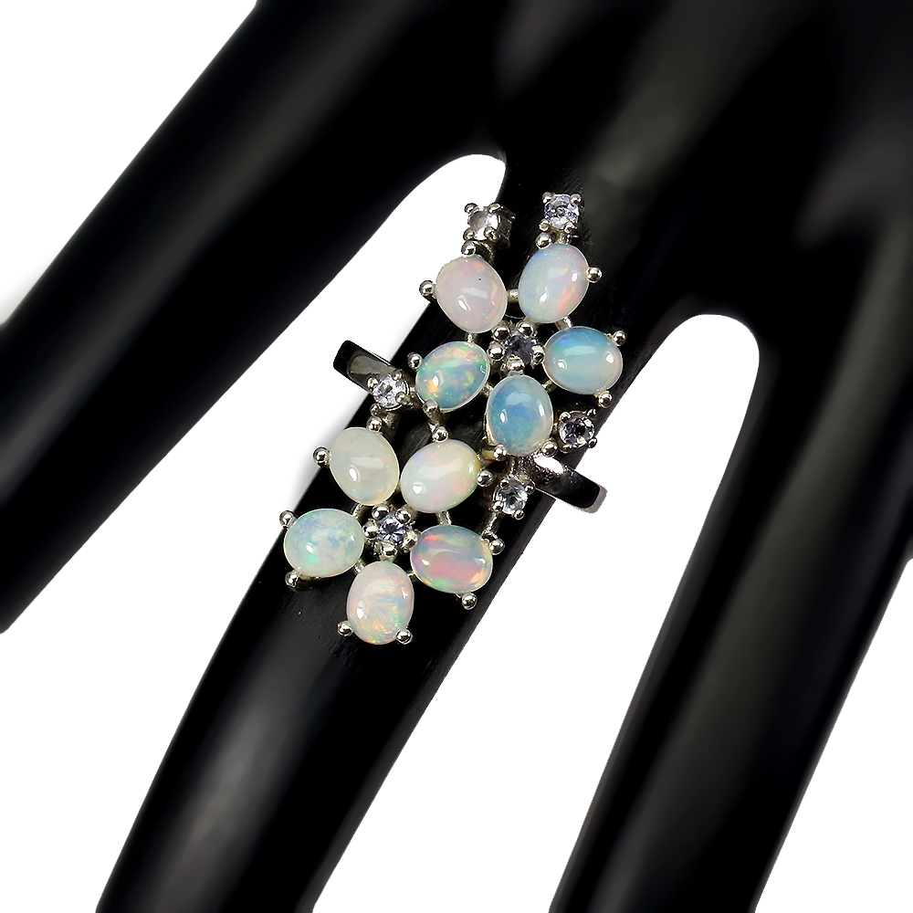 Unheated Oval Fire Opal Rainbow 5x4m Tanzanite 925 Sterling Silver Flower Ring