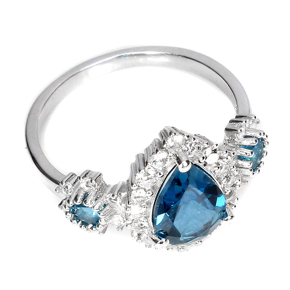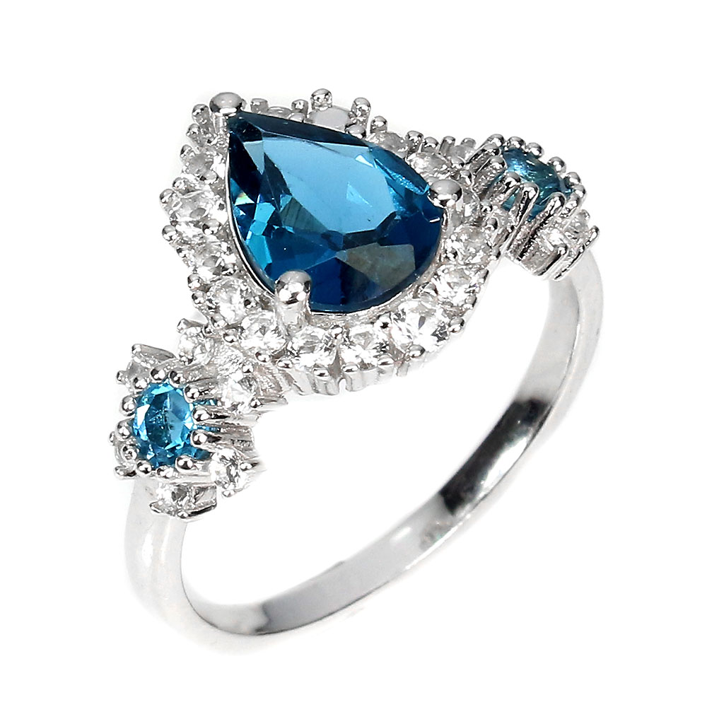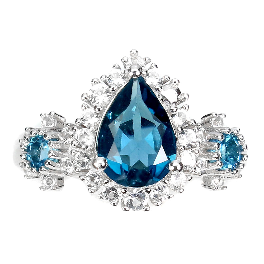 Irradiated Pear London Blue Topaz 10x7mm White Topaz 925 Sterling Silver Ring 8