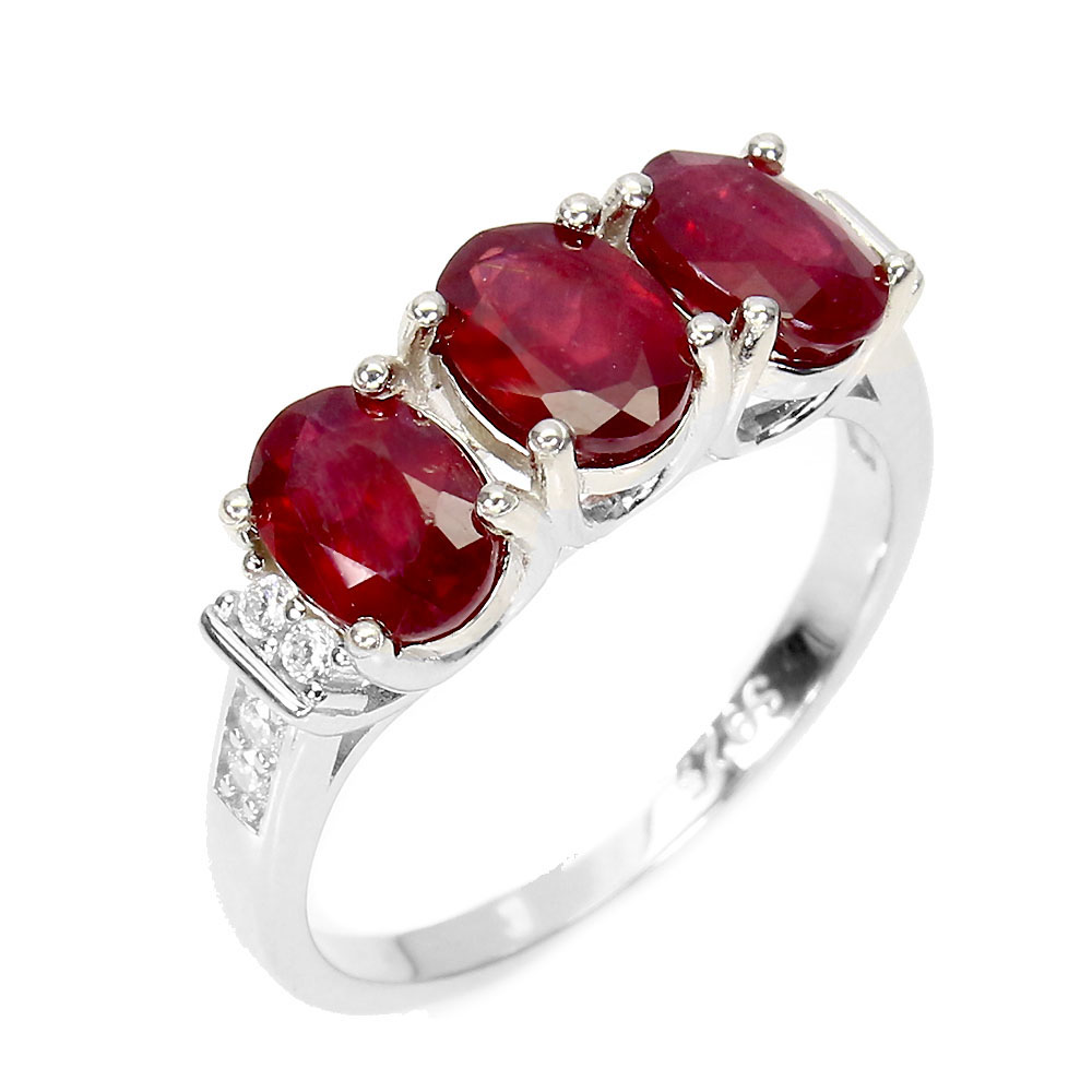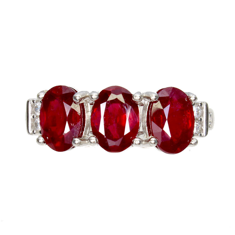 Heated Oval Ruby 7x5mm Simulated Cz White Gold Plate 925 Sterling Silver Ring 8