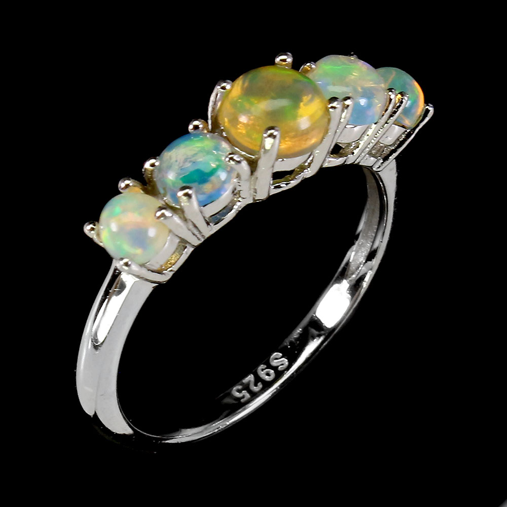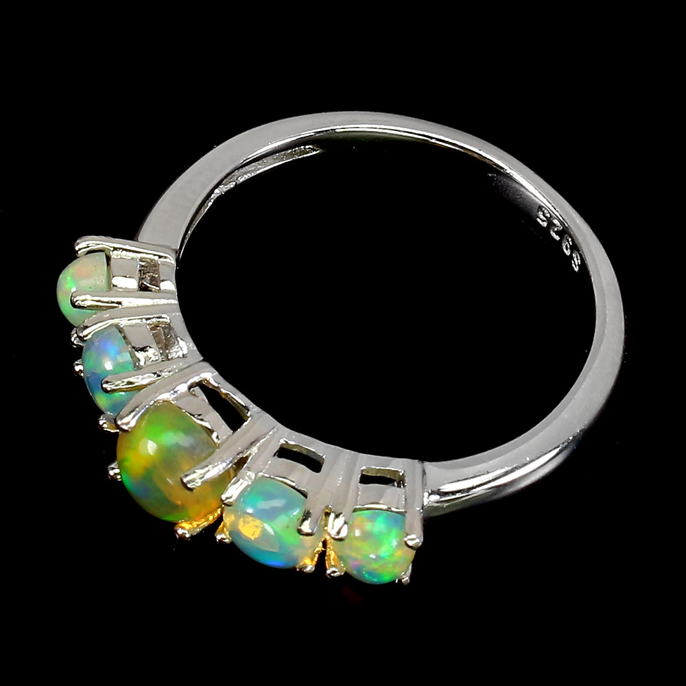 Unheated Oval Fire Opal Rainbow Full Flash 5mm 925 Sterling Silver Ring Size 7