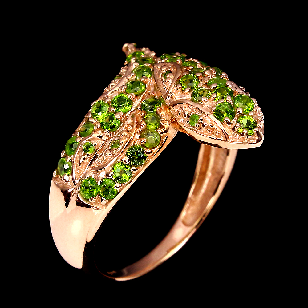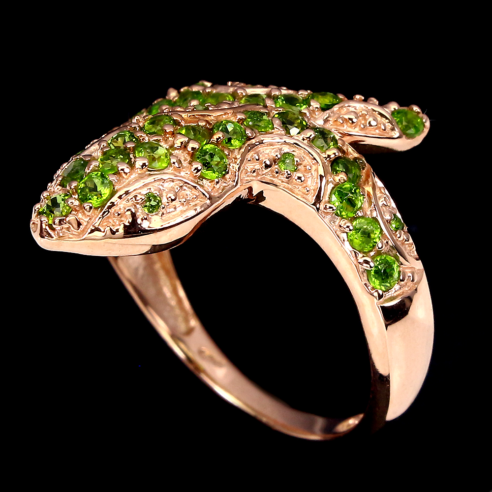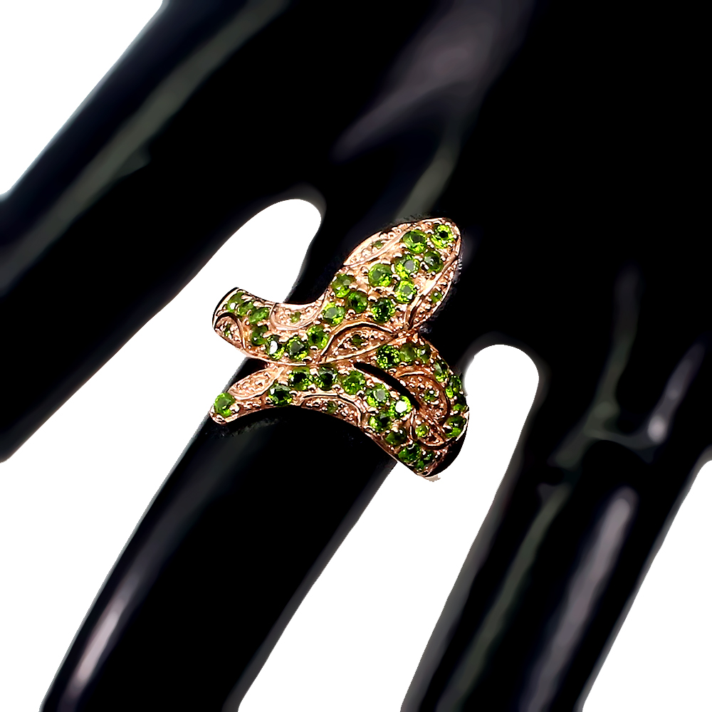Unheated Round Chrome Diopside Rose Gold Plate 925 Sterling Silver Cobra Ring 8