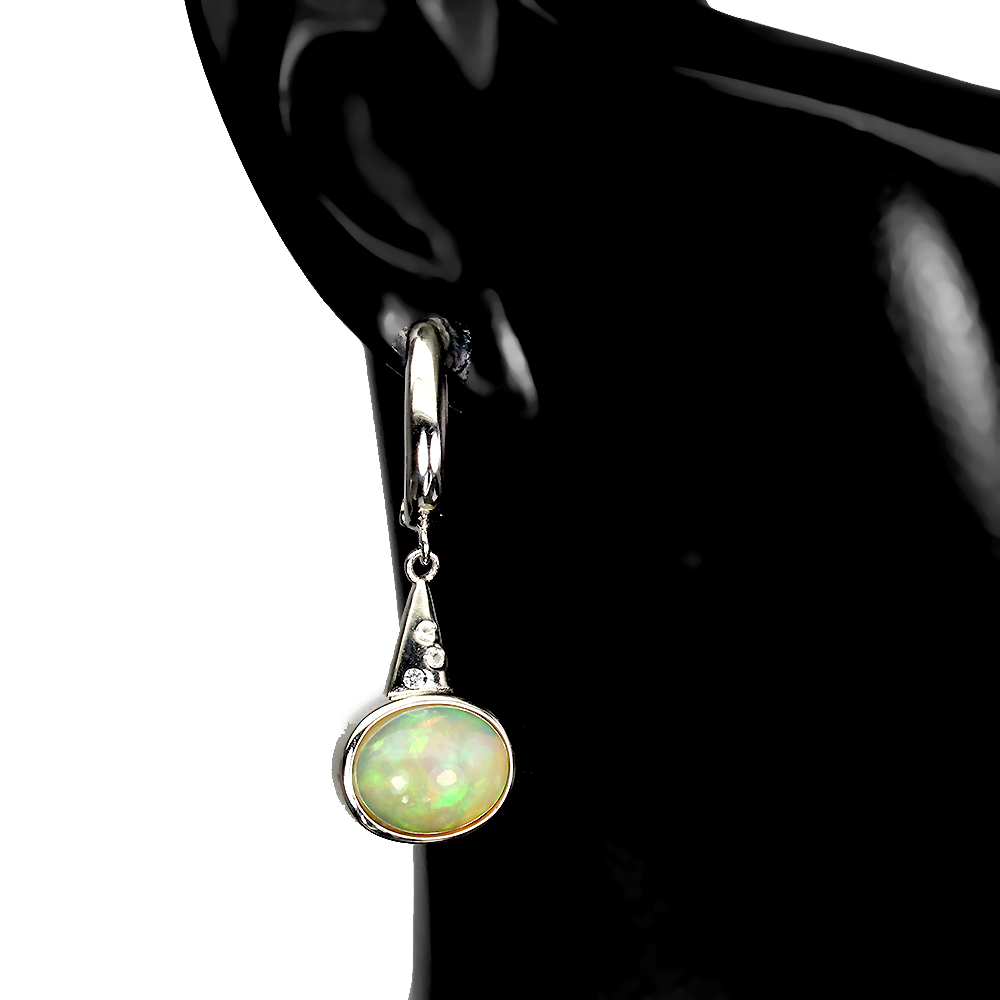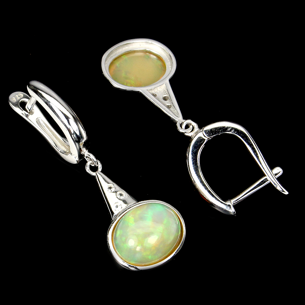 Unheated Oval Fire Opal Rainbow 10x8mm White Topaz 925 Sterling Silver Earrings