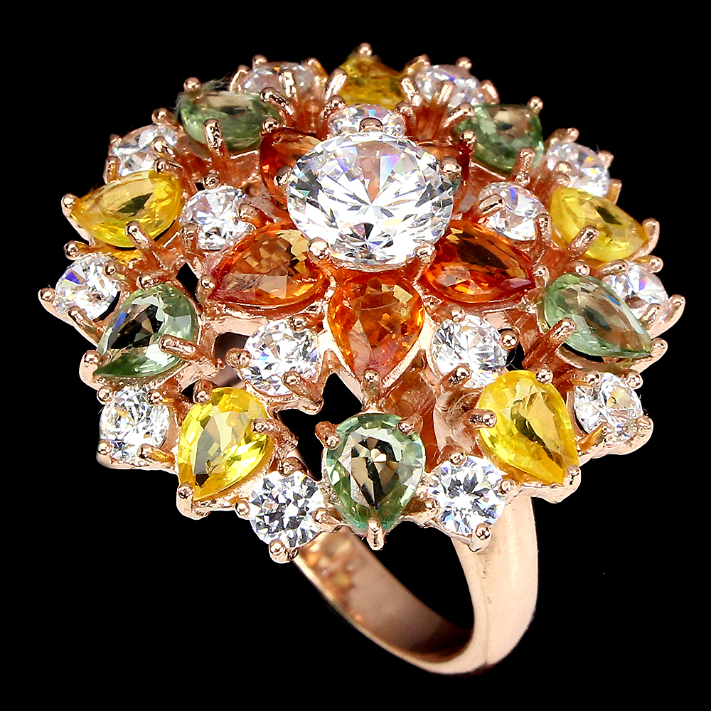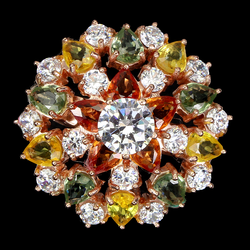 Pear Sapphire Mulit Colors White Cz 14K Rose Gold Plate 925 Sterling Silver Ring