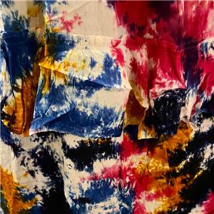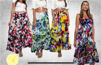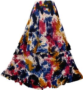 Hippie clothes. Bohemian clothing. Artsy clothing for expressive women! 100% Rayon tie dye ruffle tier skirt with elastic waist.Waist has 5 inches of elastic smocking. Can be worn as a skirt or strapless dress. Bright and colorful tie dye will be sure to grab attention wherever you go. Because of the handmade nature of this item tie dye patterns can vary from item to item. The skirt on the model is just to show you what the skirt might look like on, but the colors in the separate pictures are the ones you will receive. Check the measurements below.