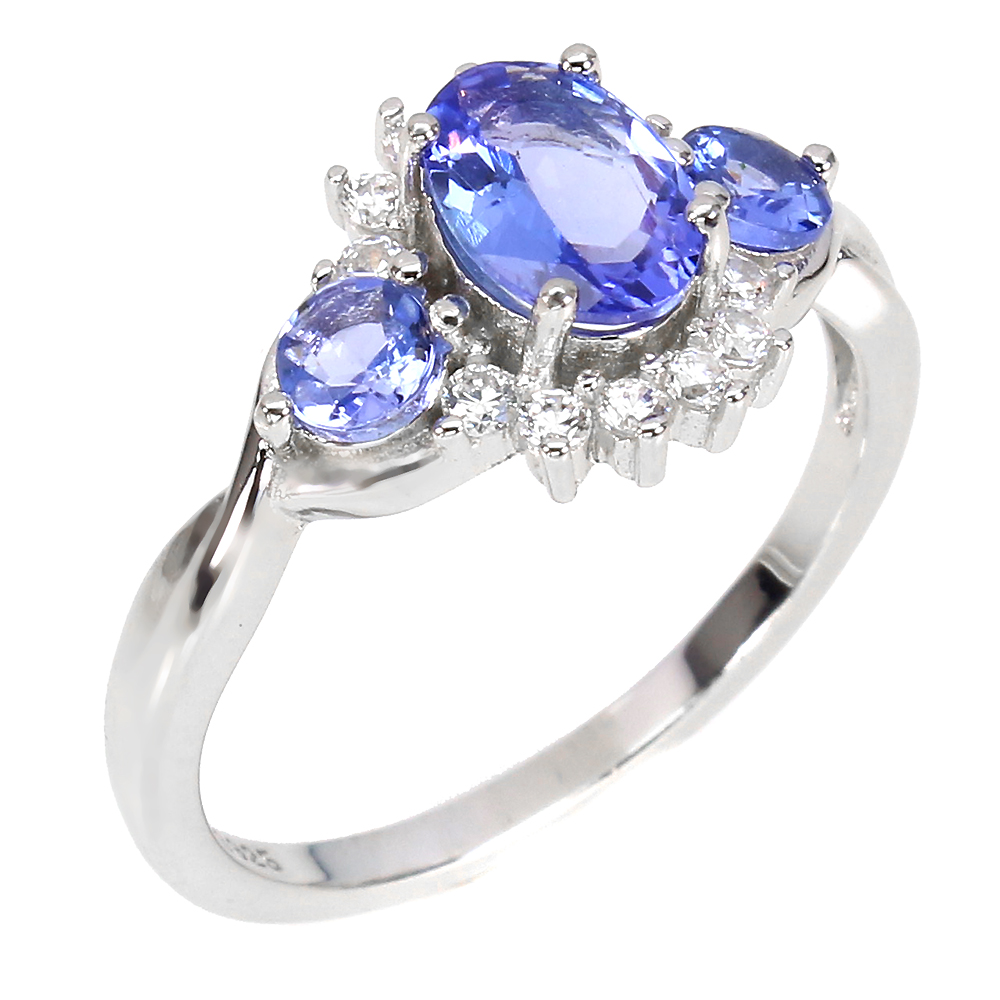 Unheated Oval Blue Tanzanite 7x5mm Simulated Cz 925 Sterling Silver Ring Size 8
