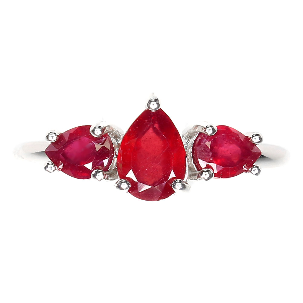 Heated Pear Red Ruby 7x5mm 14K White Gold Plate 925 Sterling Silver Ring 8.5