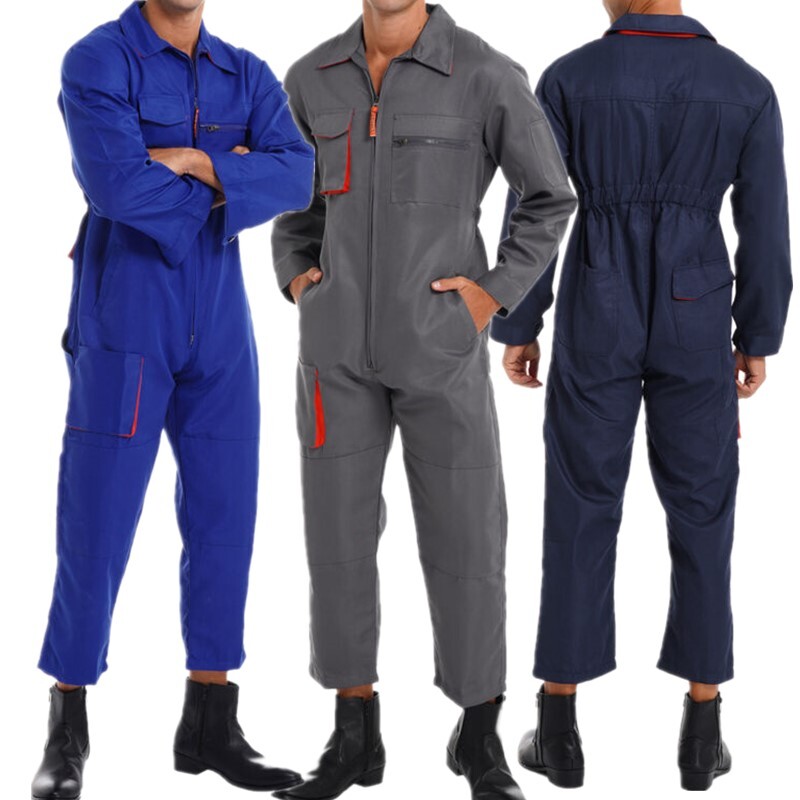 Mens Long Sleeve Zipper Coveralls Multi Pockets Work Jumpsuit Mechanic Uniform Cleaner Workwear.