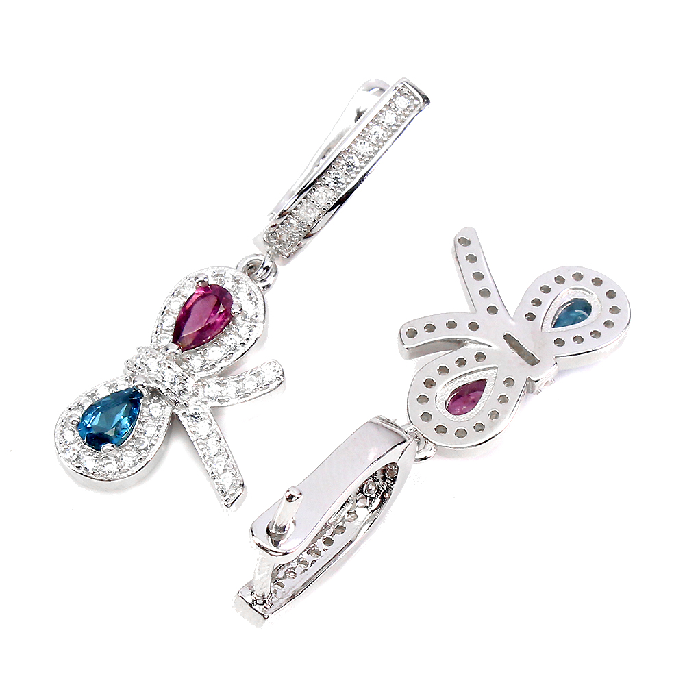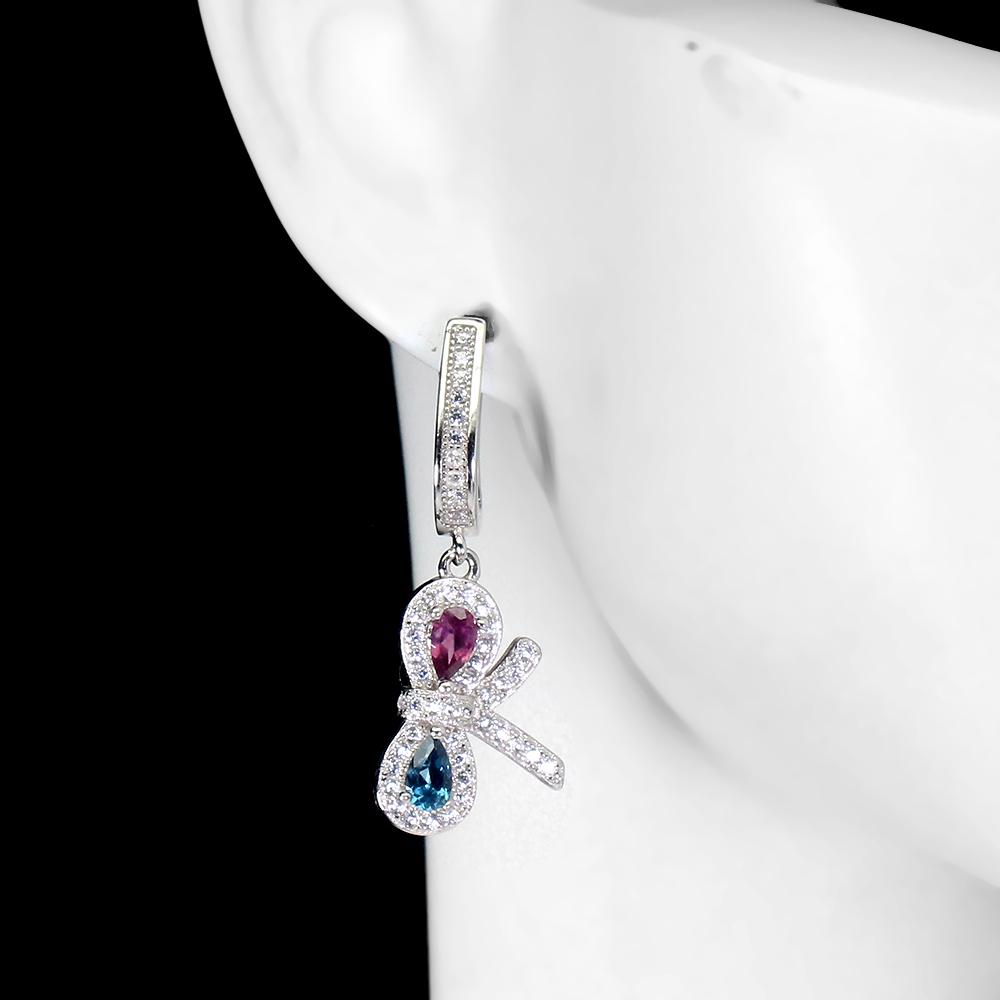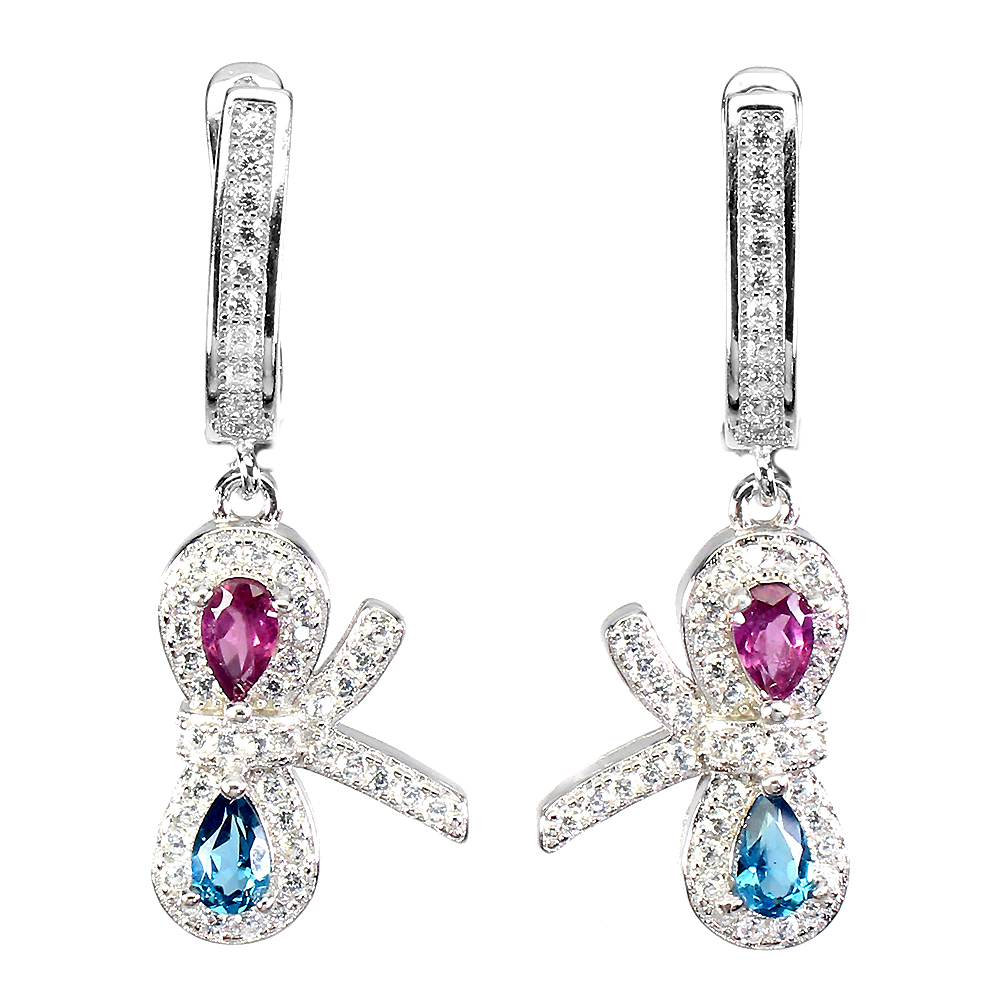 Pear London Blue Topaz 5x4mm Rhodolite Cz 925 Sterling Silver Ribbon Earrings
