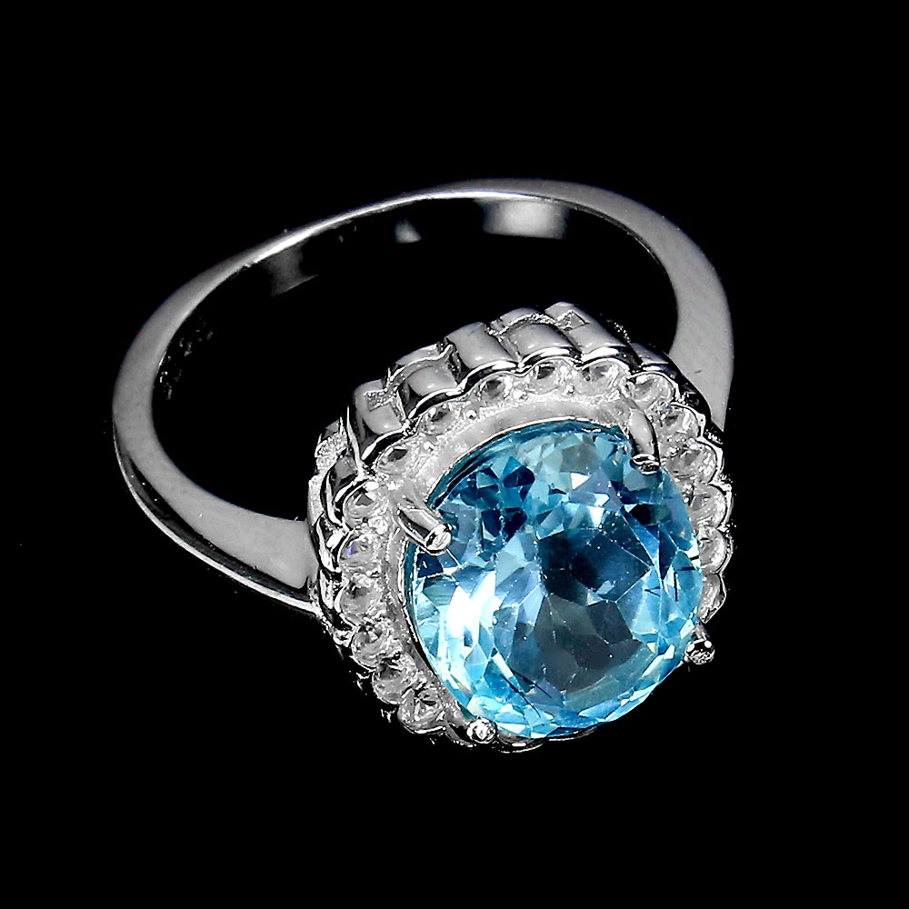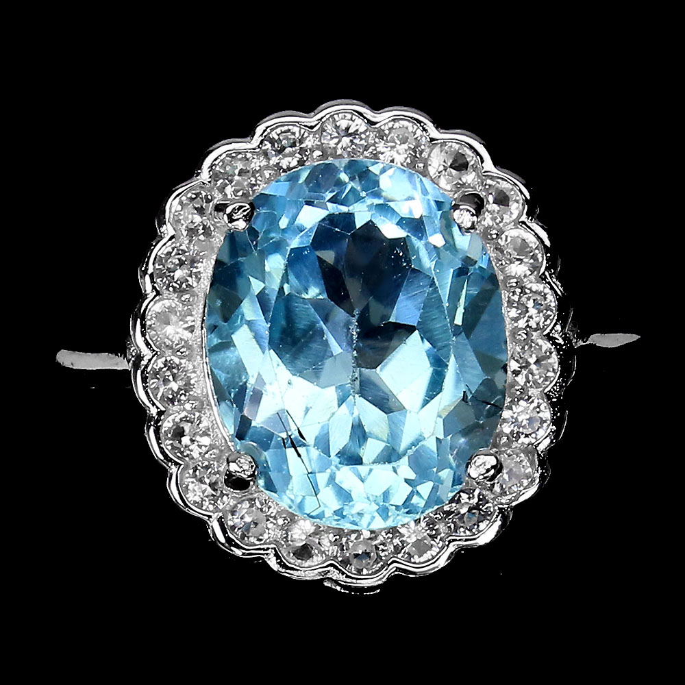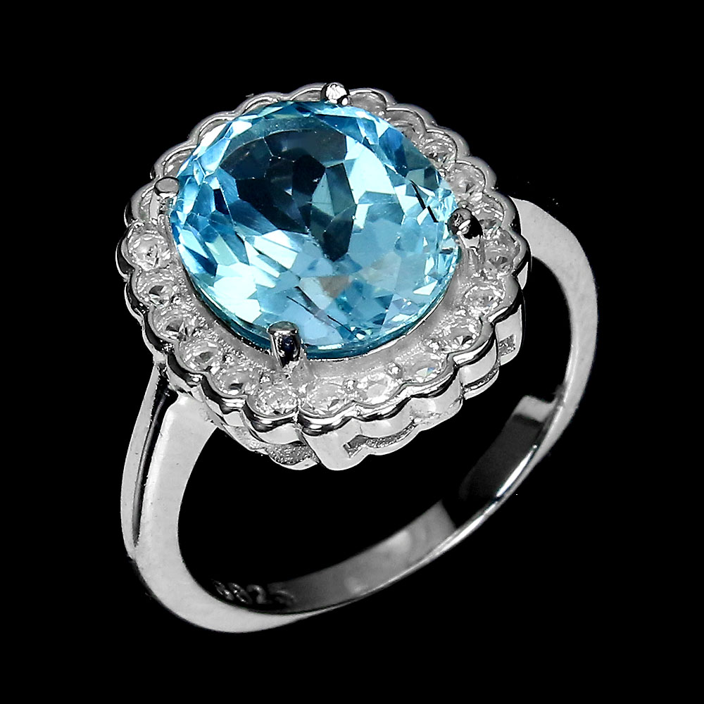 Irradiated Oval Sky Blue Topaz 11x9mm White Topaz 925 Sterling Silver Ring 9